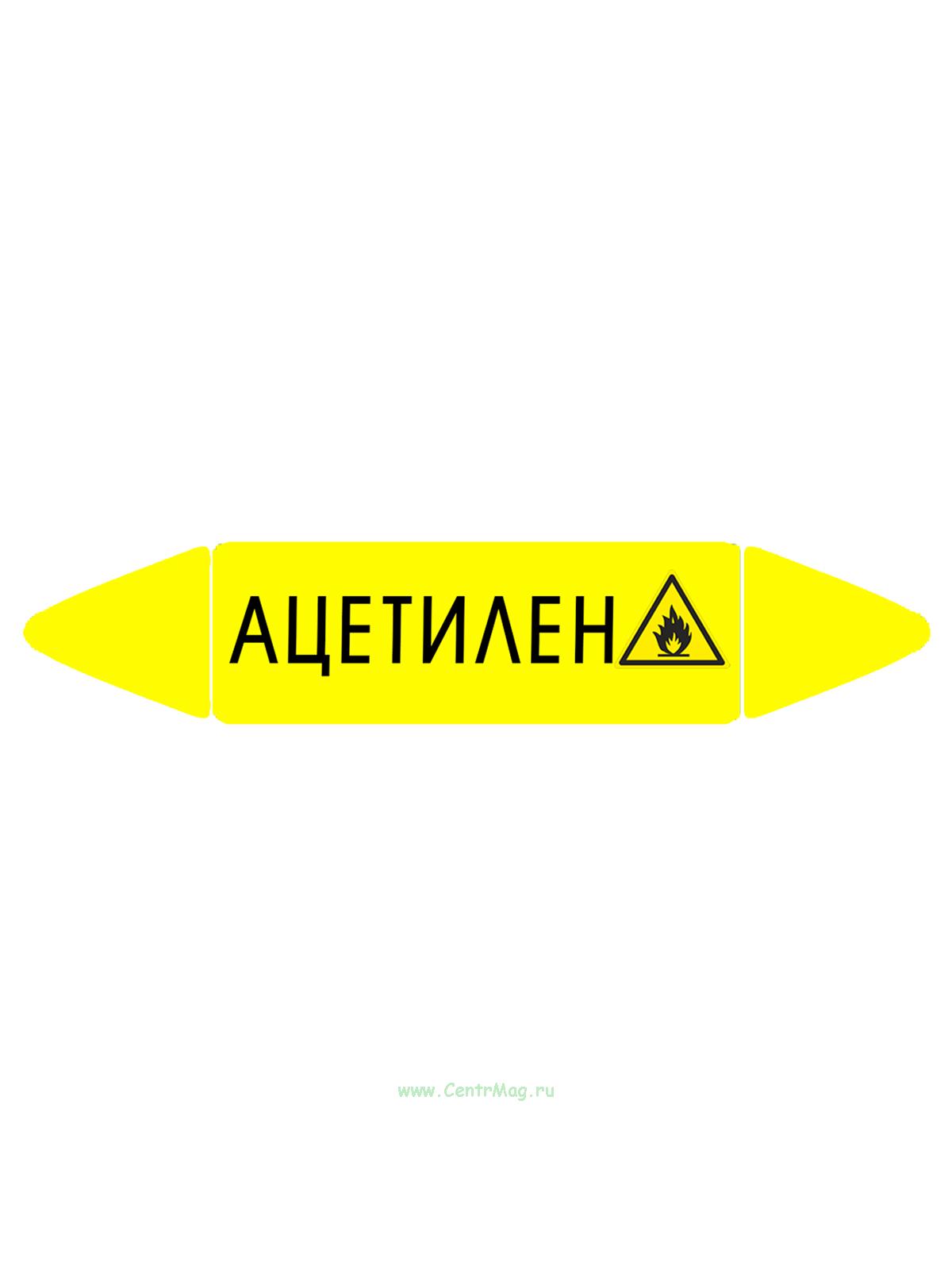 Самоклеящийся маркер "Ацетилен, легковоспламеняющиеся вещества" (52 х 252 мм, с ламинацией) для использования на наружных трубопроводах (110 руб.)