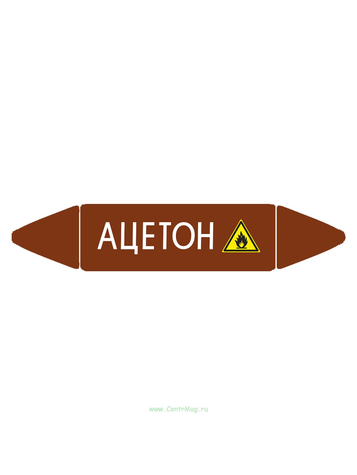 Самоклеящийся маркер "Ацетон, легковоспламеняющиеся вещества" (52 х 252 мм, с ламинацией) для использования на наружных трубопроводах (110 руб.)