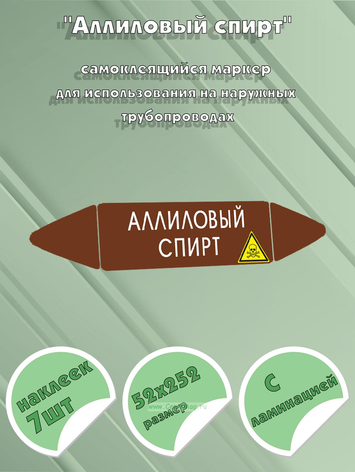 Самоклеящийся маркер "Аллиловый спирт, ядовитые вещества" (52 х 252 мм, с ламинацией) для использования на наружных трубопроводах