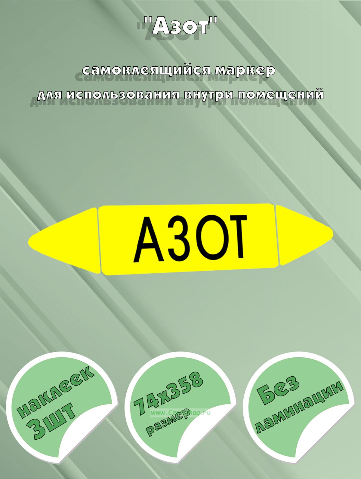 Самоклеящийся маркер "Азот" (74 х 358 мм, с ламинацией) для использования на наружных трубопроводах (210 руб.)