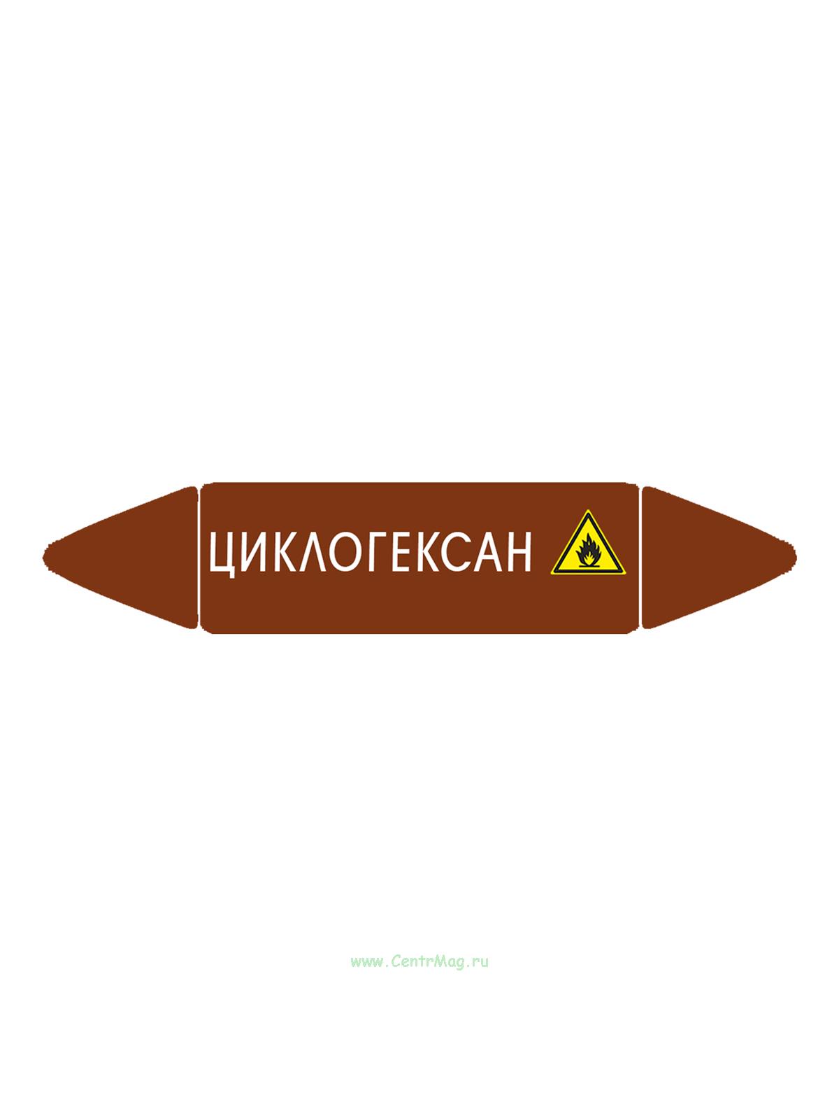 Самоклеящийся маркер "Циклогексан, легковоспламеняющиеся вещества" (26 х 126 мм, с ламинацией) для использования на наружных трубопроводах (40 руб.)