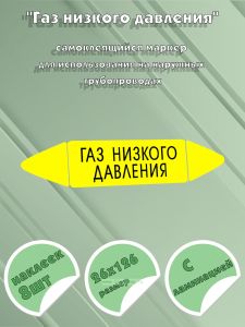 Самоклеящийся маркер "Газ низкого давления" (26 х 126 мм, с ламинацией) для использования на наружных трубопроводах