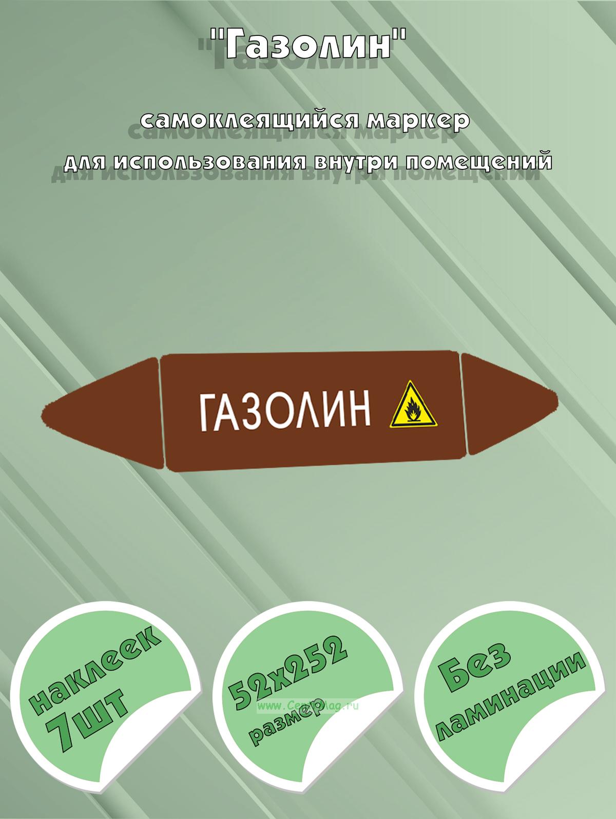 Самоклеящийся маркер "Газолин, легковоспламеняющиеся вещества" (52 х 252 мм, с ламинацией) для использования на наружных трубопроводах (110 руб.)