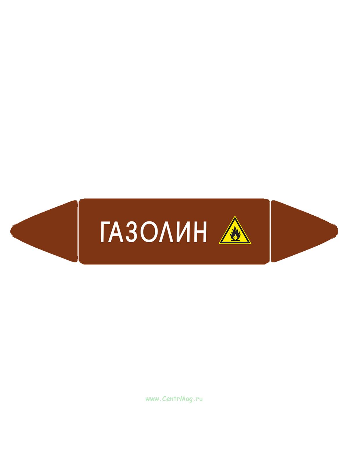 Самоклеящийся маркер "Газолин, легковоспламеняющиеся вещества" (74 х 358 мм, с ламинацией) для использования на наружных трубопроводах (210 руб.)