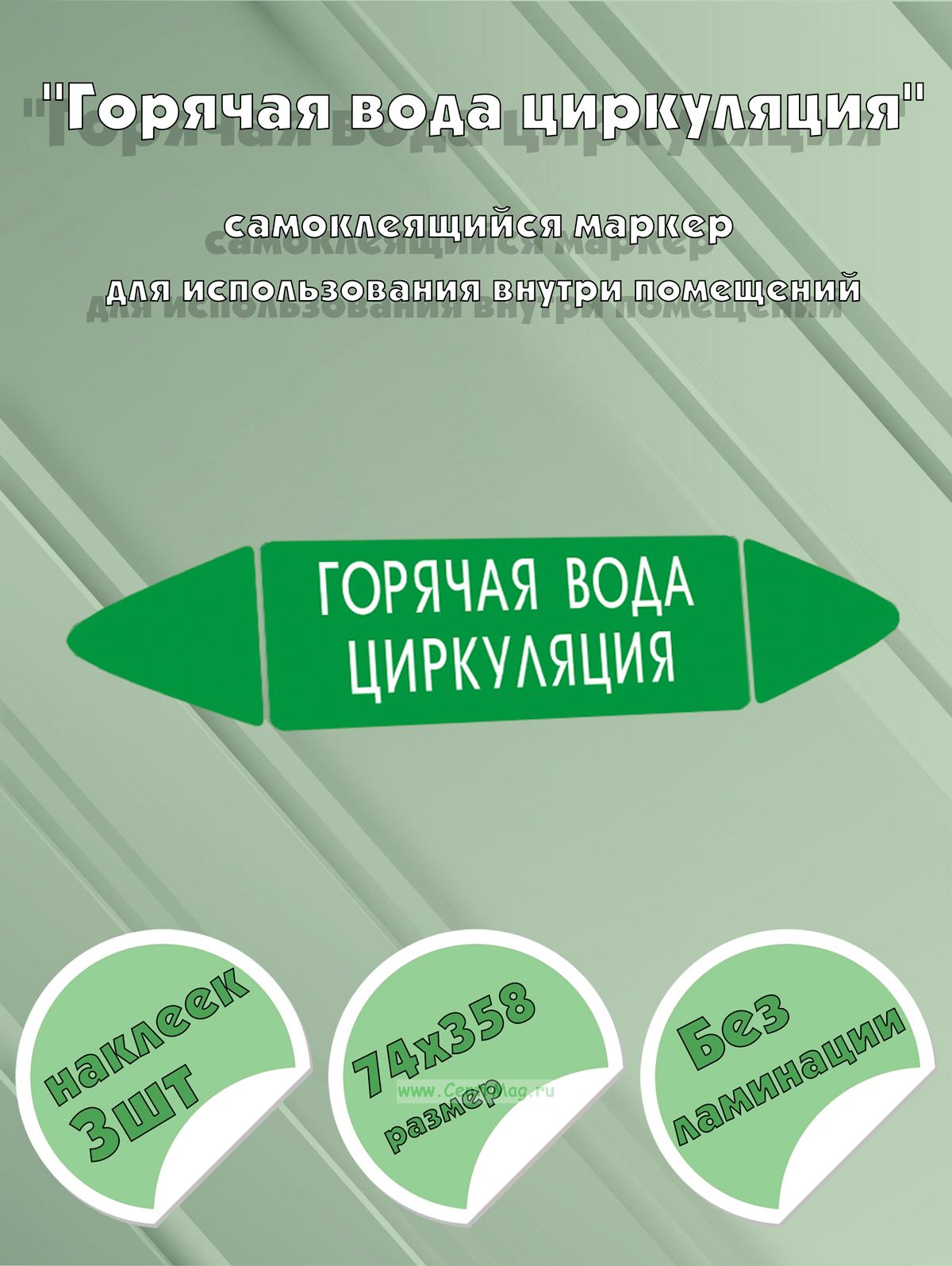 Самоклеящийся маркер "Горячая вода циркуляция" (74 х 358 мм, с ламинацией, для использования на наружных трубопроводах) (210 руб.)