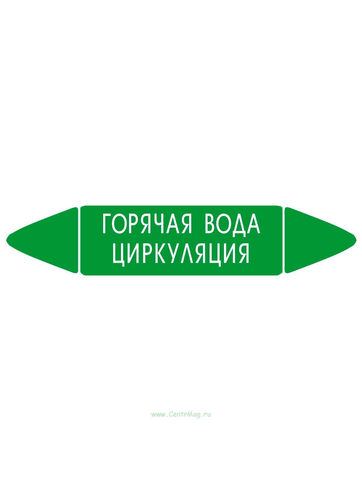 Самоклеящийся маркер "Горячая вода циркуляция" (26 х 126 мм, с ламинацией, для использования на наружных трубопроводах) (40 руб.)