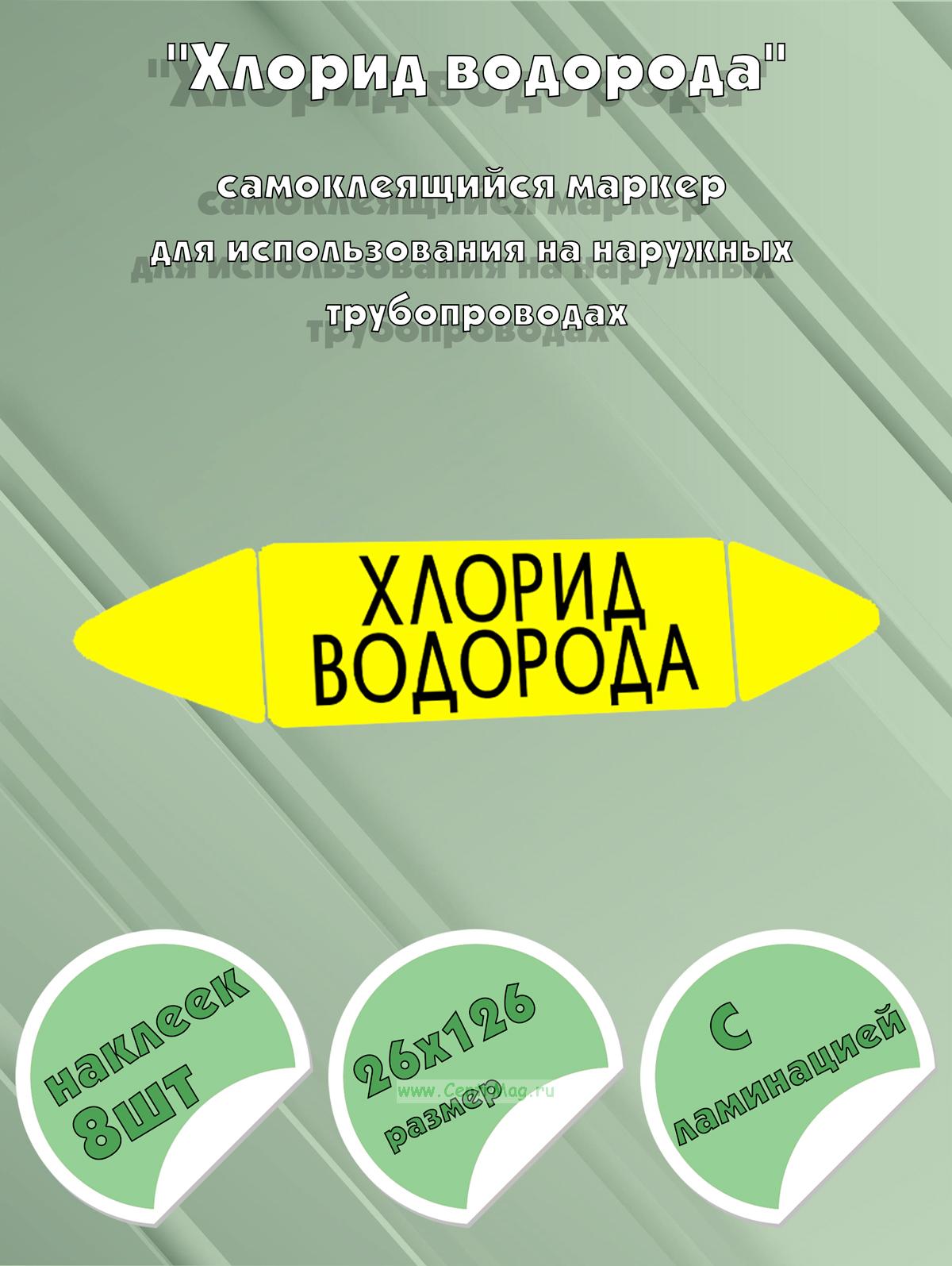 Самоклеящийся маркер "Хлорид водорода" (26 х 126 мм, с ламинацией) для использования на наружных трубопроводах