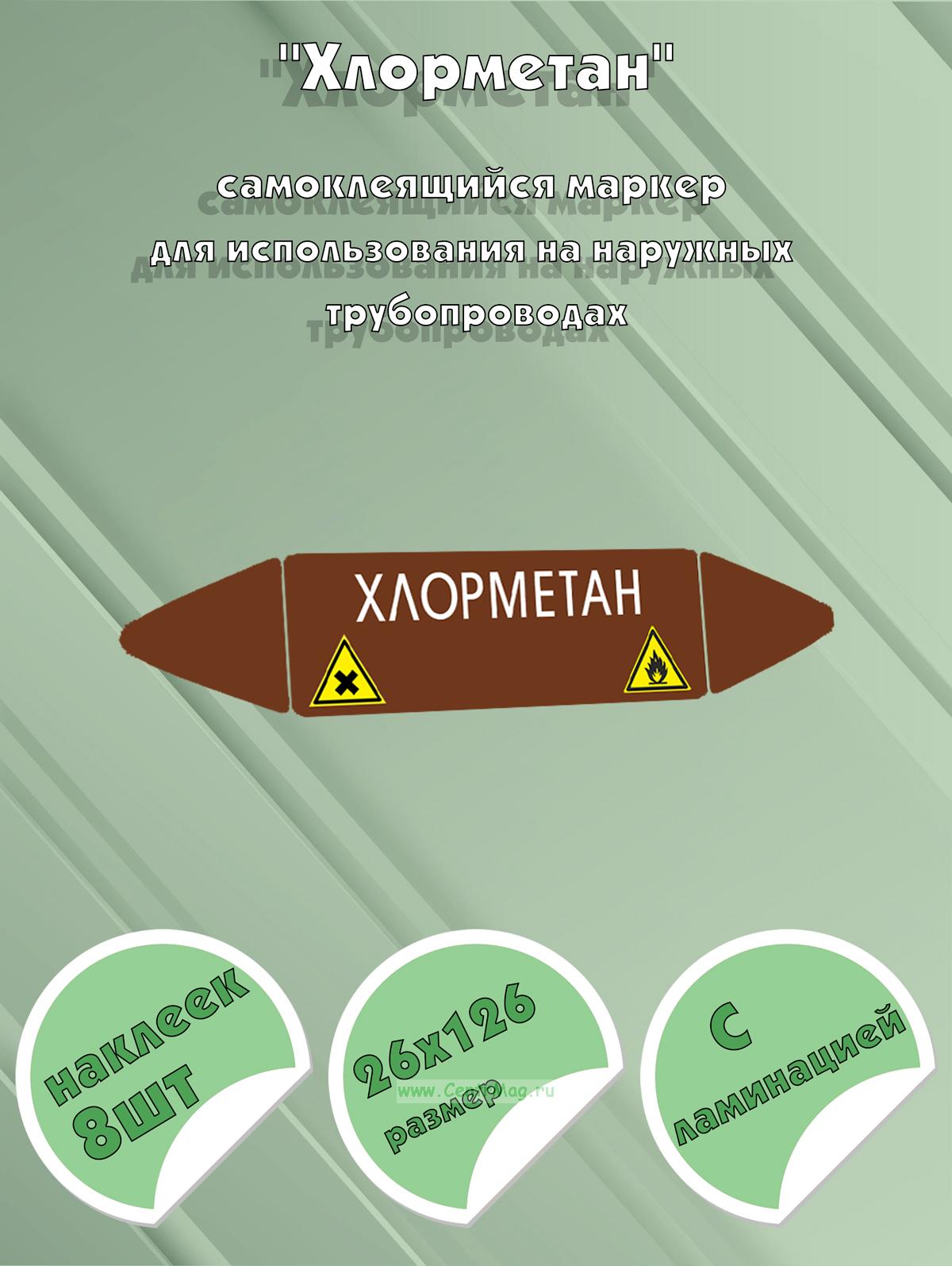 Самоклеящийся маркер "Хлорметан, вредные и аллергические вещества" (74 х 358 мм, с ламинацией) для использования на наружных трубопроводах (210 руб.)