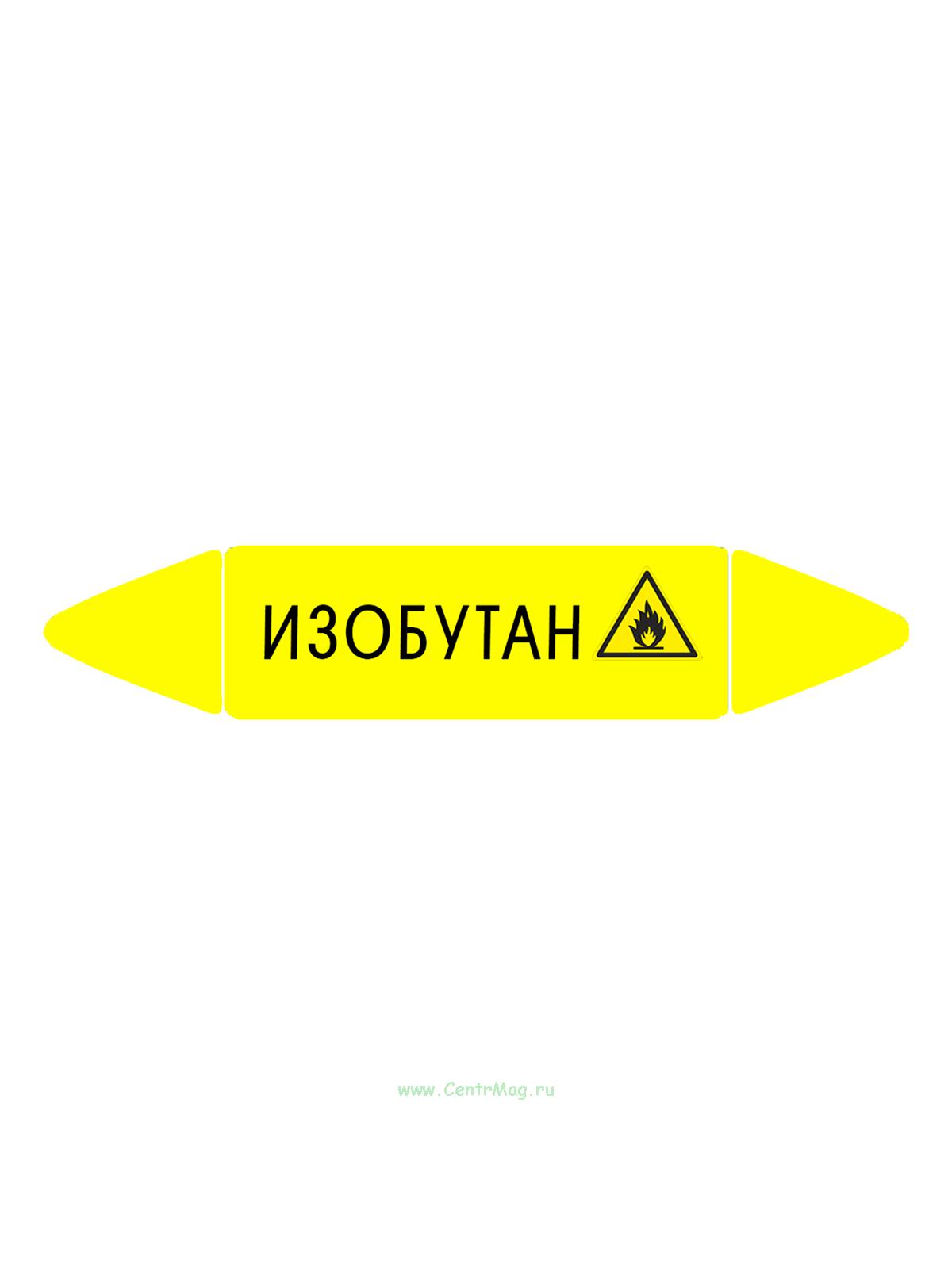 Самоклеящийся маркер "Изобутан, легковоспламеняющиеся вещества" (26 х 126 мм, без ламинации) для использования внутри помещений (30 руб.)