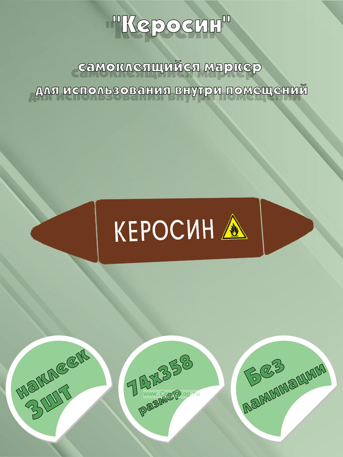 Самоклеящийся маркер "Керосин, легковоспламеняющиеся вещества" (74 х 358 мм, без ламинации) для использования внутри помещений