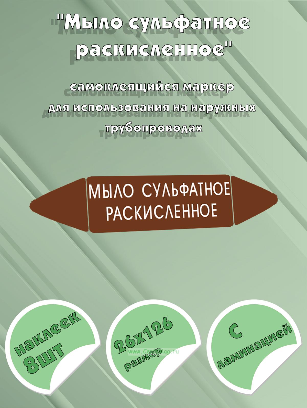 Самоклеящийся маркер "Мыло сульфатное раскисленное" (26 х 126 мм, с ламинацией) для использования на наружных трубопроводах