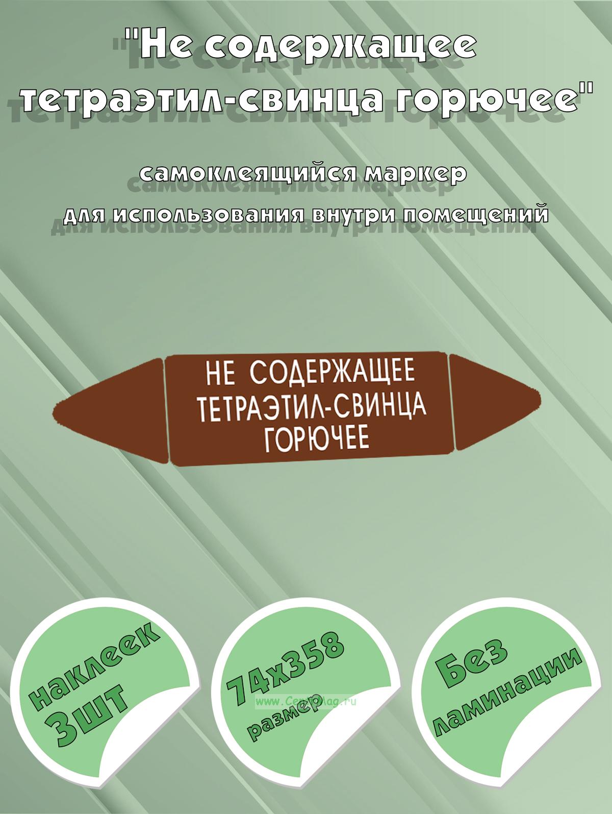Самоклеящийся маркер "Не содержащее тетраэтил-свинца горючее" (74 х 358 мм, с ламинацией) для использования на наружных трубопроводах (210 руб.)