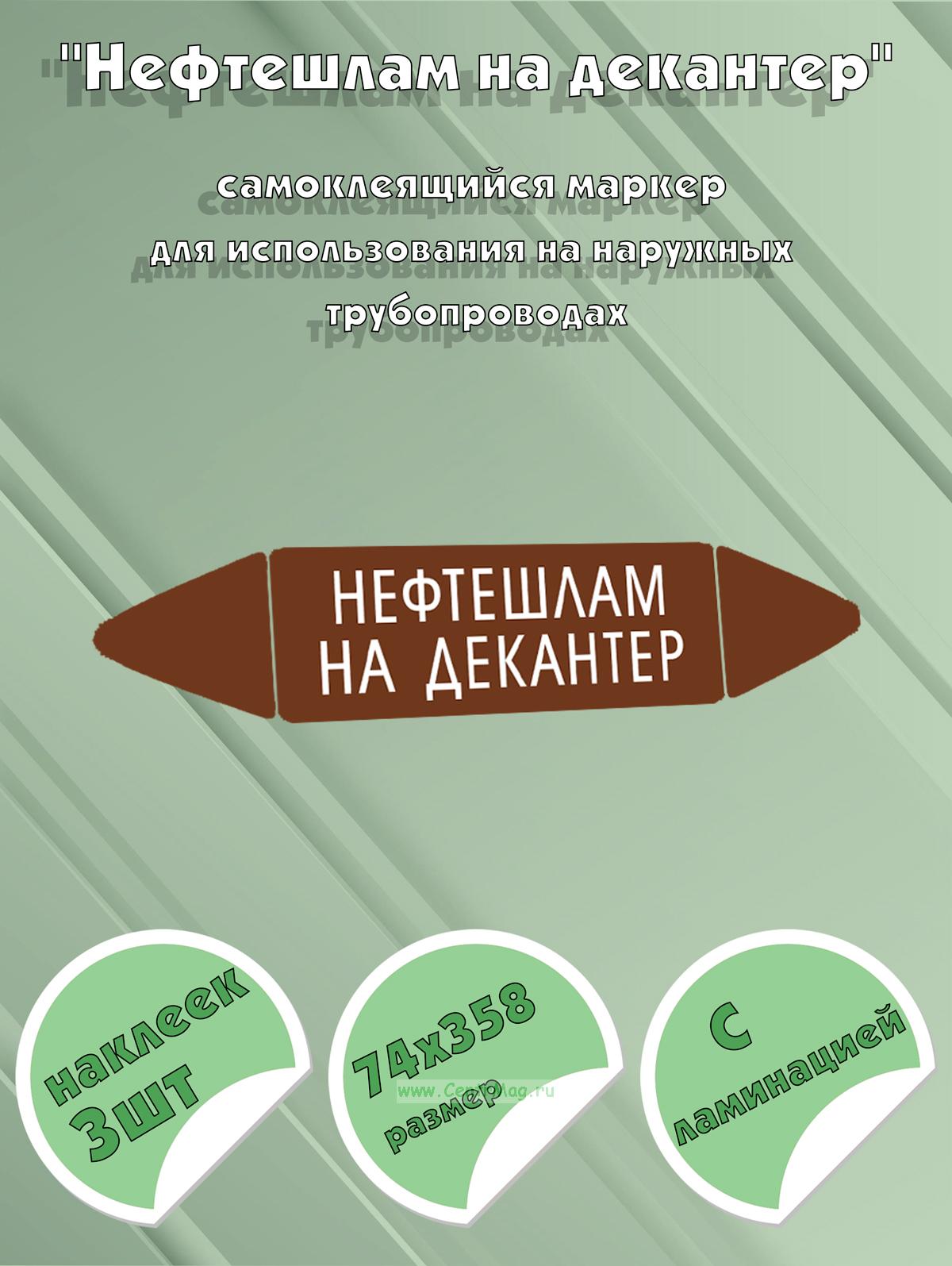 Самоклеящийся маркер "Нефтешлам на декантер" (74 х 358 мм, с ламинацией) для использования на наружных трубопроводах