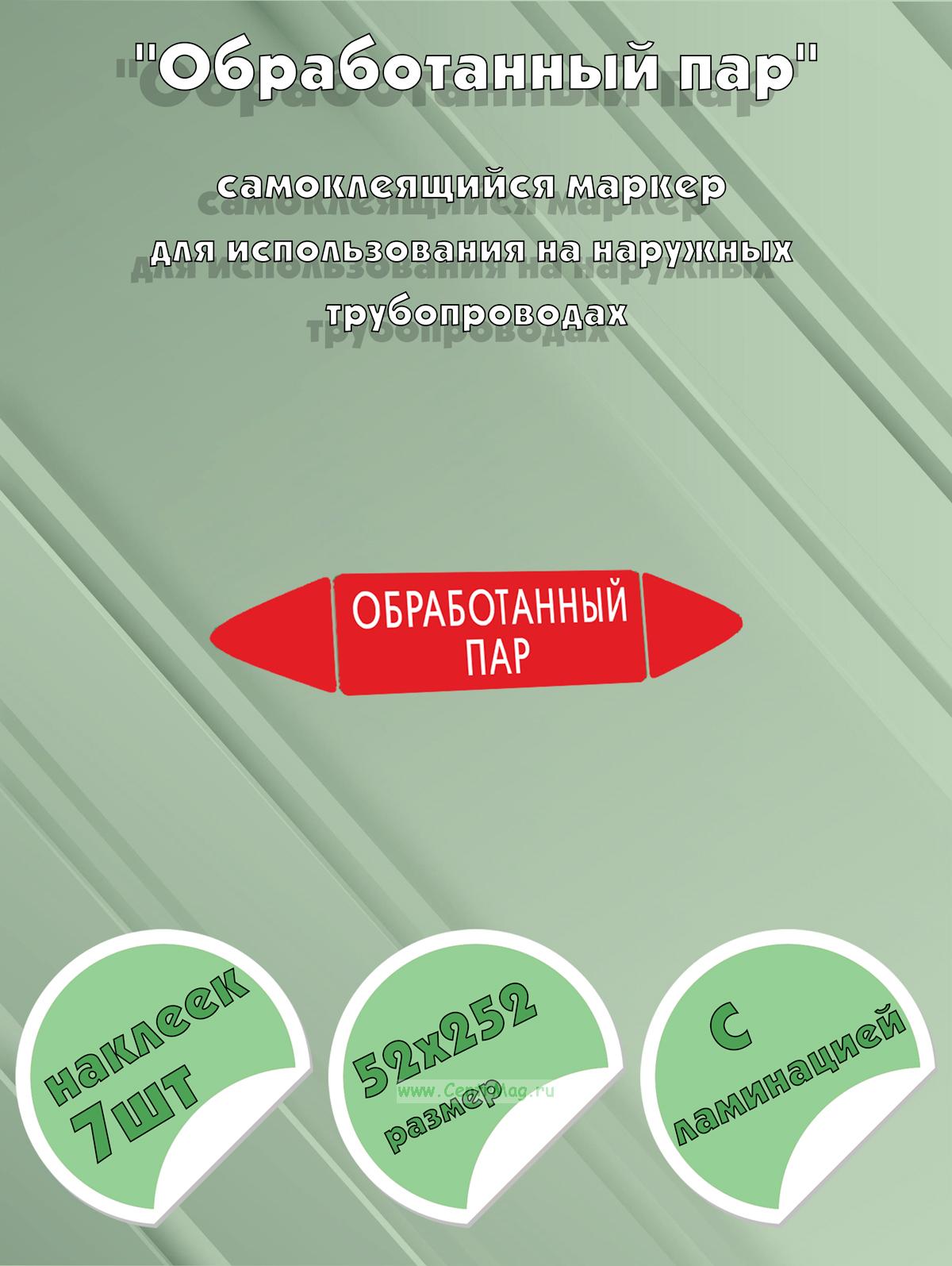 Самоклеящийся маркер "Обработанный пар" (74 х 358 мм, с ламинацией) для использования на наружных трубопроводах (210 руб.)