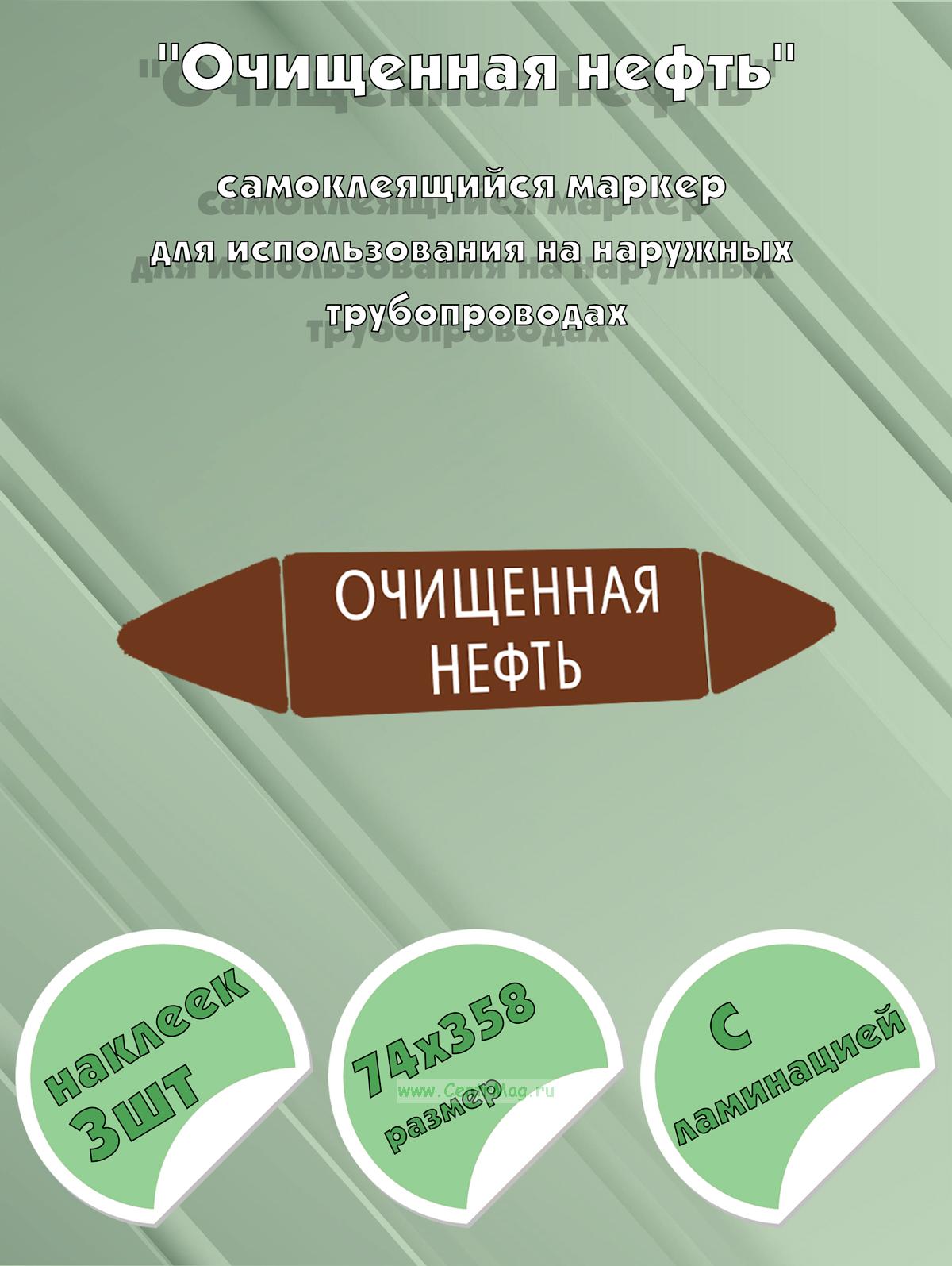 Самоклеящийся маркер "Очищенная нефть" (74 х 358 мм, с ламинацией) для использования на наружных трубопроводах