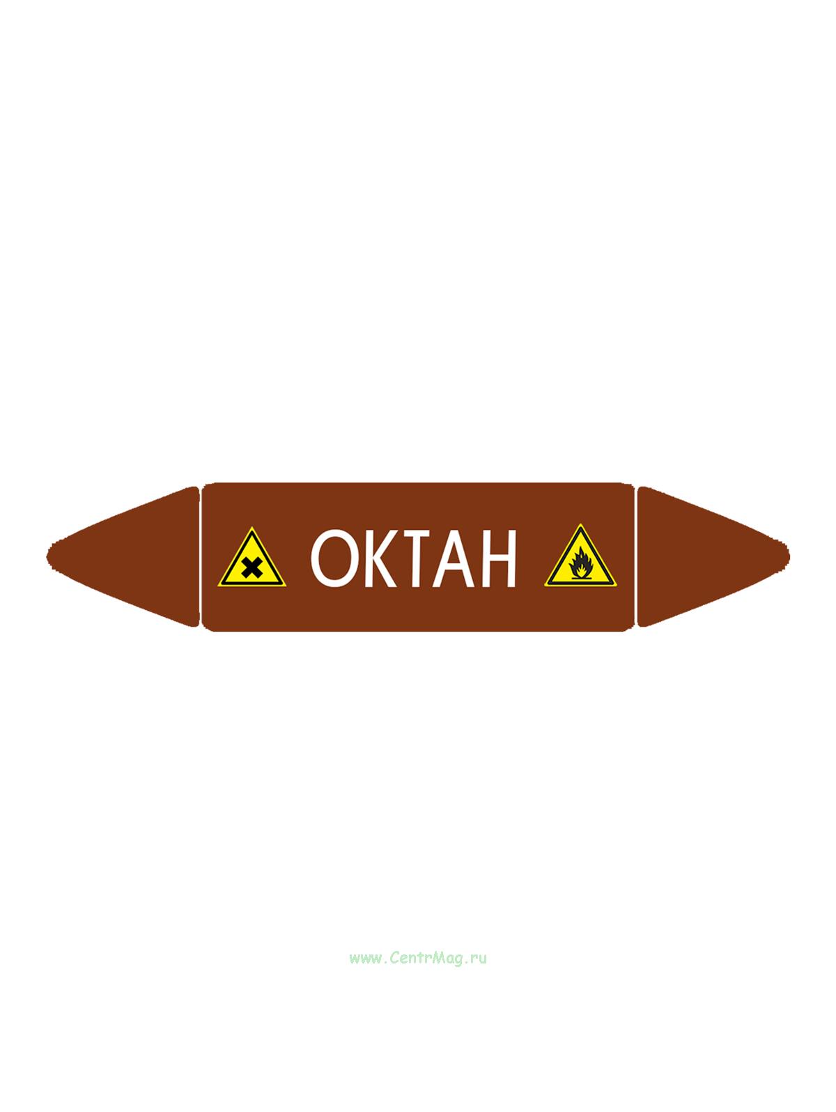 Самоклеящийся маркер "Октан, легковоспламеняющиеся вещества" (26 х 126 мм, с ламинацией) для использования на наружных трубопроводах (40 руб.)