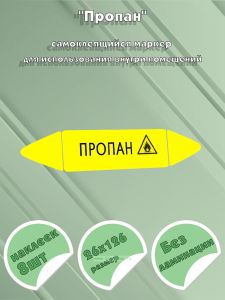 Самоклеящийся маркер "Пропан, легковоспламеняющиеся вещества" (74 х 358 мм, с ламинацией) для использования на наружных трубопроводах (210 руб.)