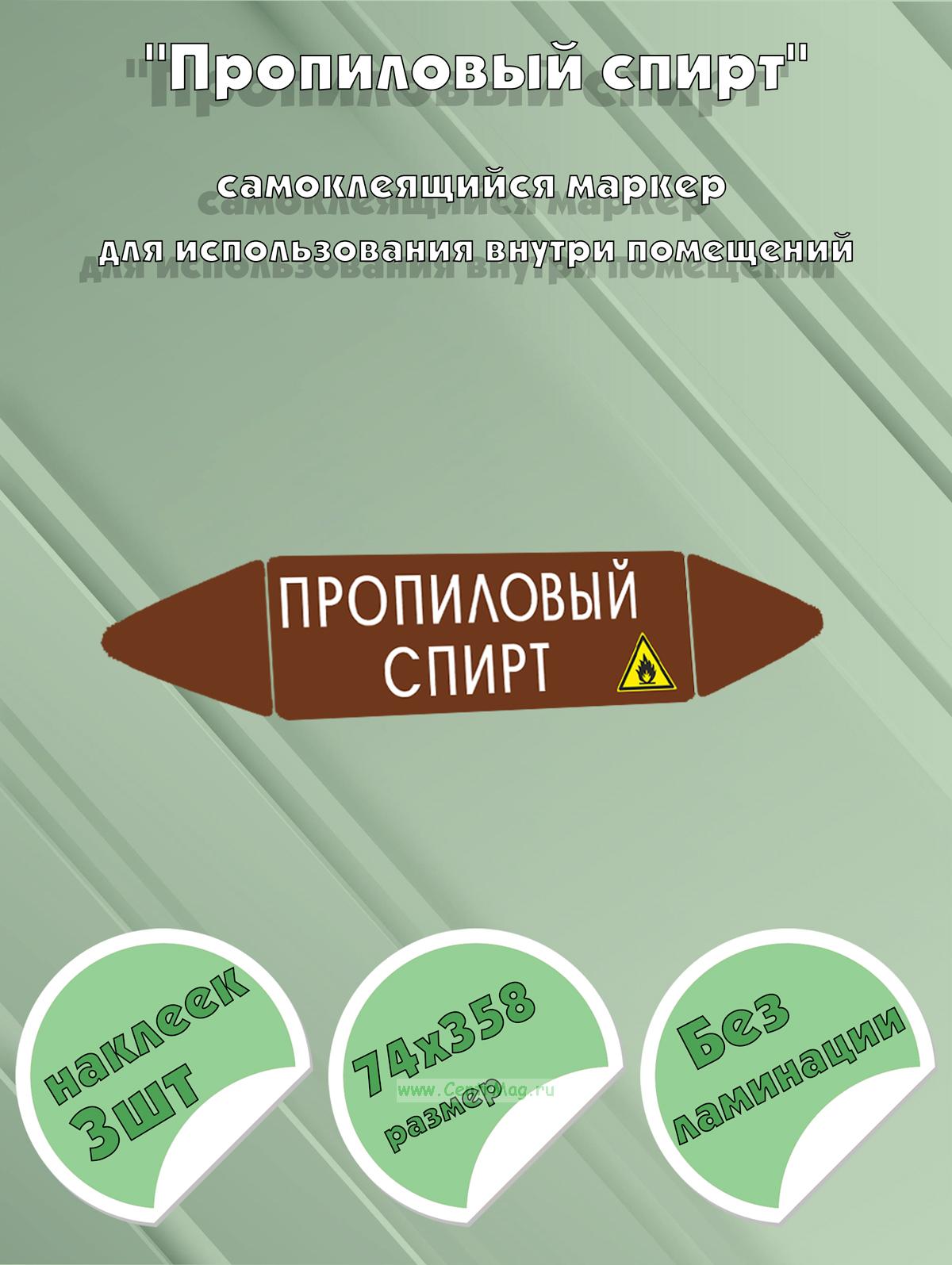 Самоклеящийся маркер "Пропиловый спирт, легковоспламеняющиеся вещества" (74 х 358 мм, с ламинацией) для использования на наружных трубопроводах (210 руб.)