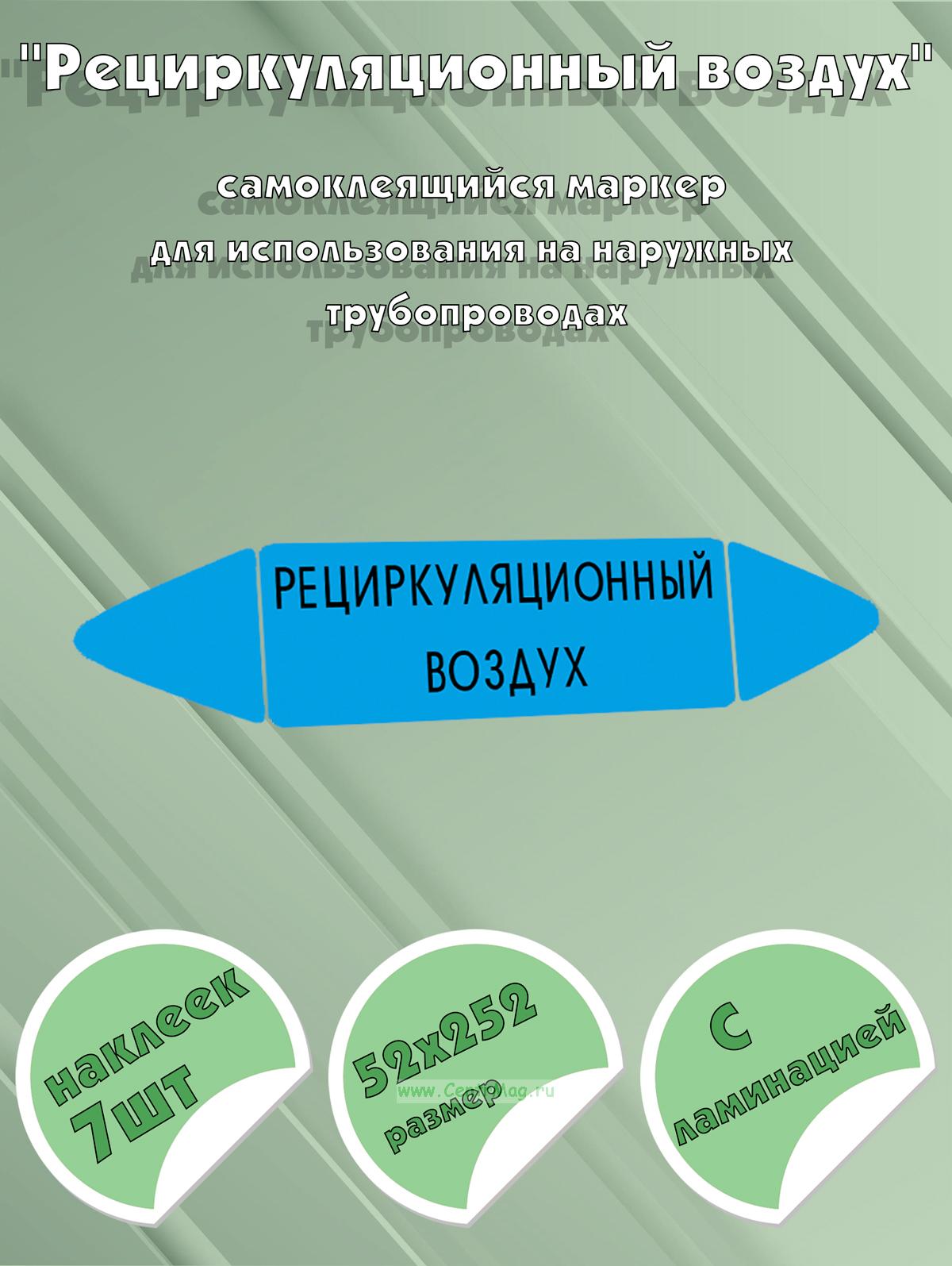 Самоклеящийся маркер "Рециркуляционный воздух" (74 х 358 мм, с ламинацией) для использования на наружных трубопроводах (210 руб.)