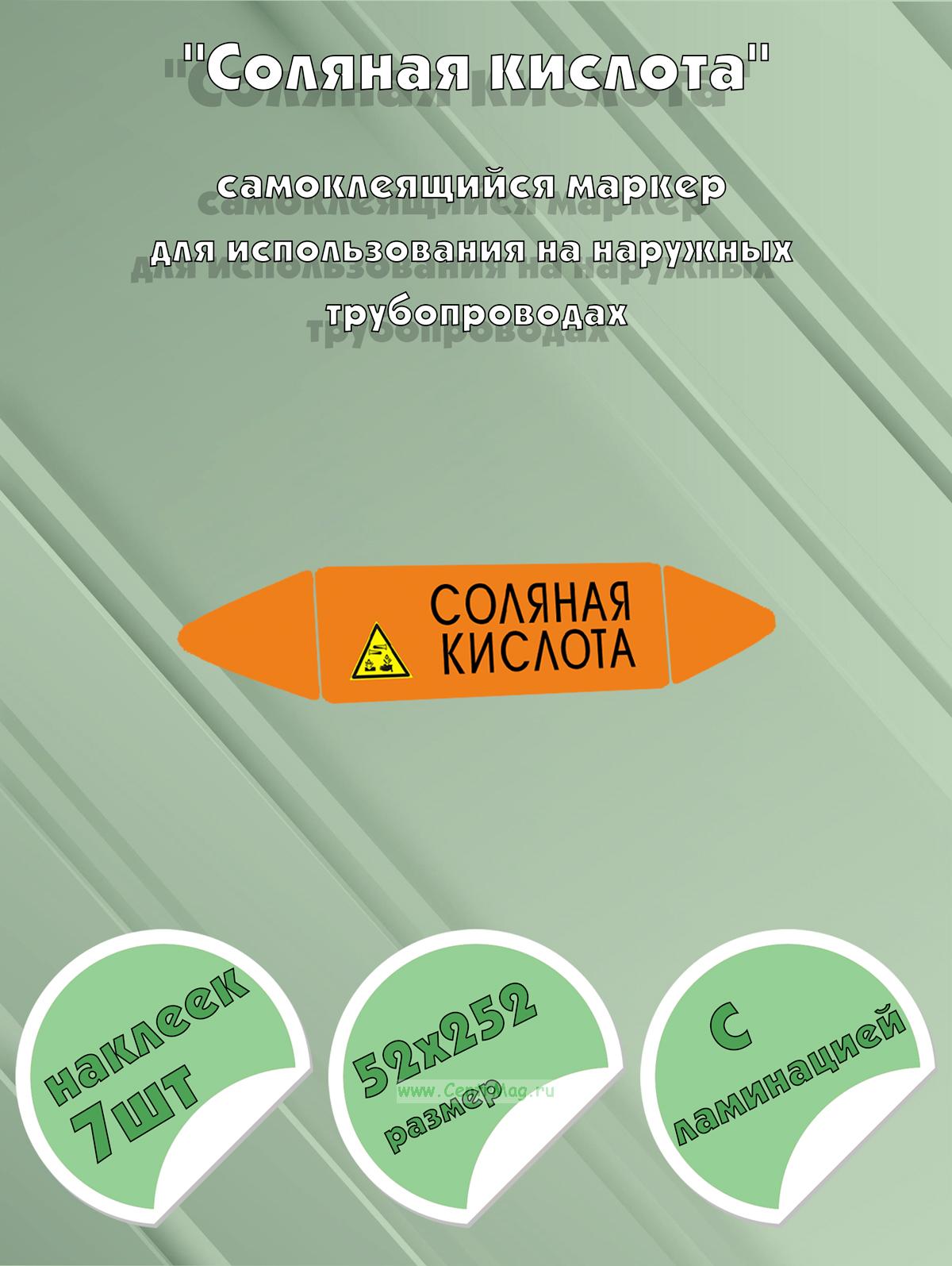 Самоклеящийся маркер "Соляная кислота, коррозионные вещества" (74 х 358 мм, с ламинацией) для использования на наружных трубопроводах (210 руб.)