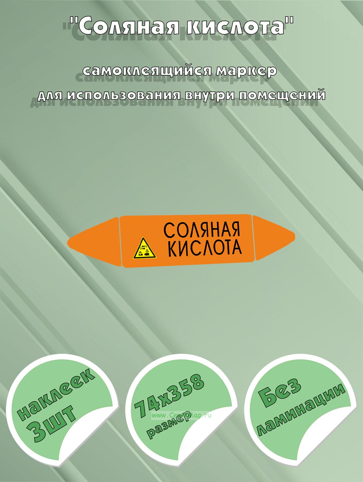 Самоклеящийся маркер "Соляная кислота, коррозионные вещества" (74 х 358 мм, с ламинацией) для использования на наружных трубопроводах (210 руб.)