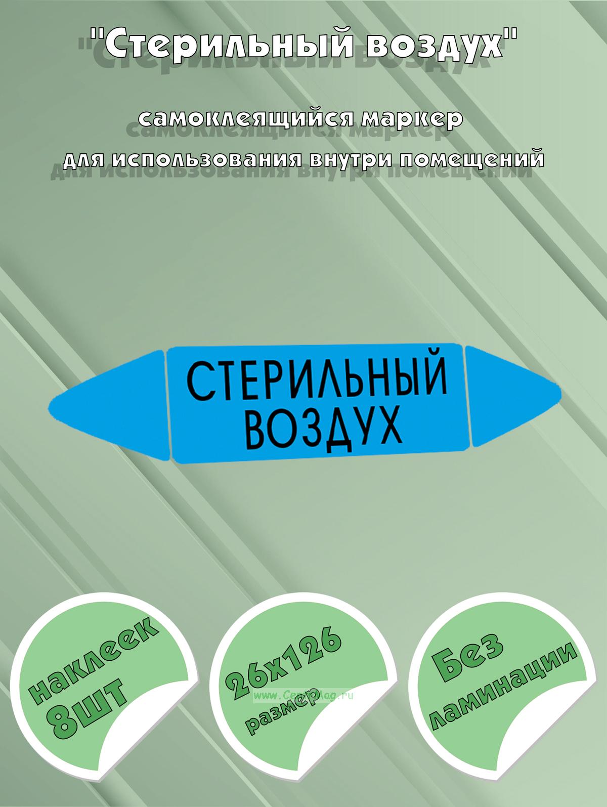 Самоклеящийся маркер «Стерильный воздух» (26 х 126 мм, с ламинацией) для использования на наружных трубопроводах (40 руб.)