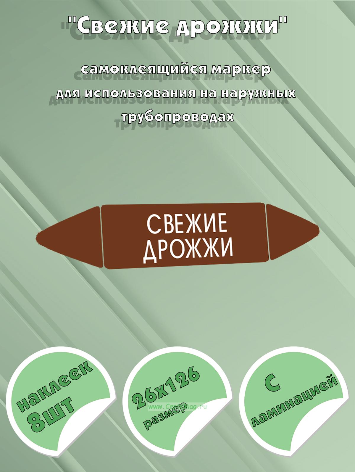 Самоклеящийся маркер "Свежие дрожжи" (74 х 358 мм, с ламинацией) для использования на наружных трубопроводах (210 руб.)
