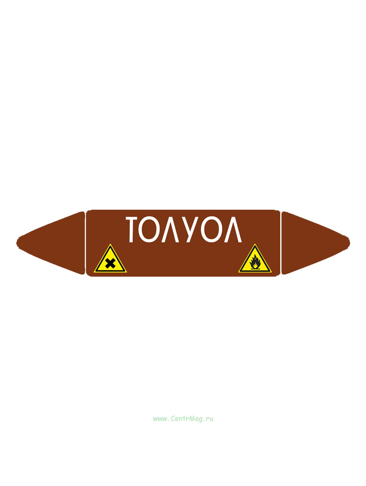 Самоклеящийся маркер "Толуол, легковоспламеняющиеся, вредные и аллергические вещества" (74 х 358 мм, с ламинацией) для использования на наружных трубо (210 руб.)