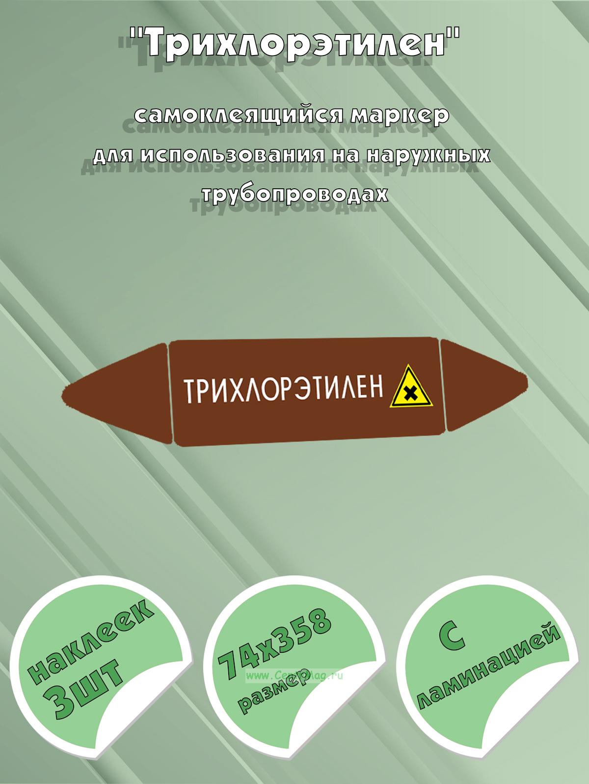 Самоклеящийся маркер "Трихлорэтилен, вредные и аллергические вещества" (74 х 358 мм, с ламинацией) для использования на наружных трубопроводах