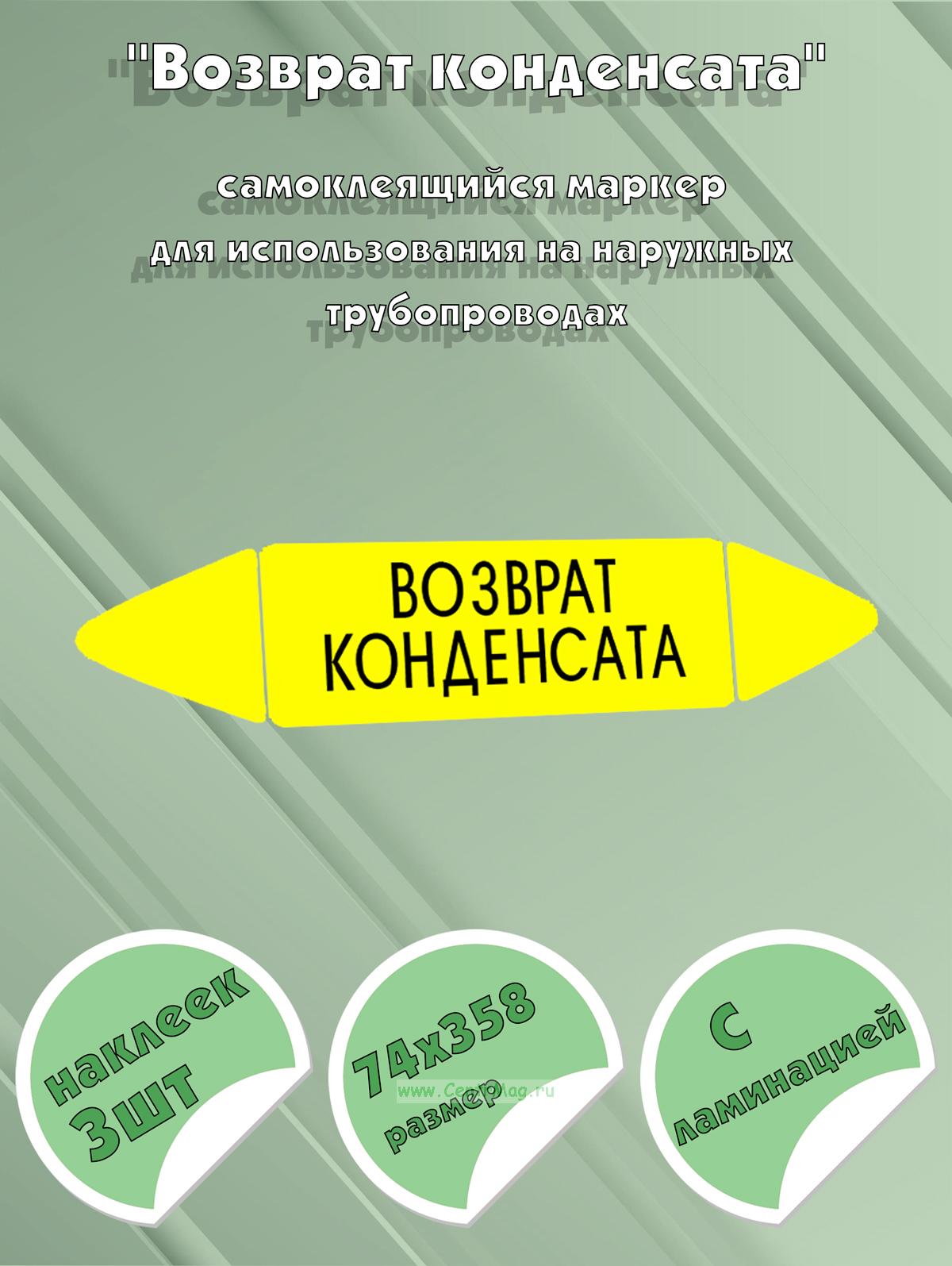 Самоклеящийся маркер "Возврат конденсата" (74 х 358 мм, с ламинацией) для использования на наружных трубопроводах