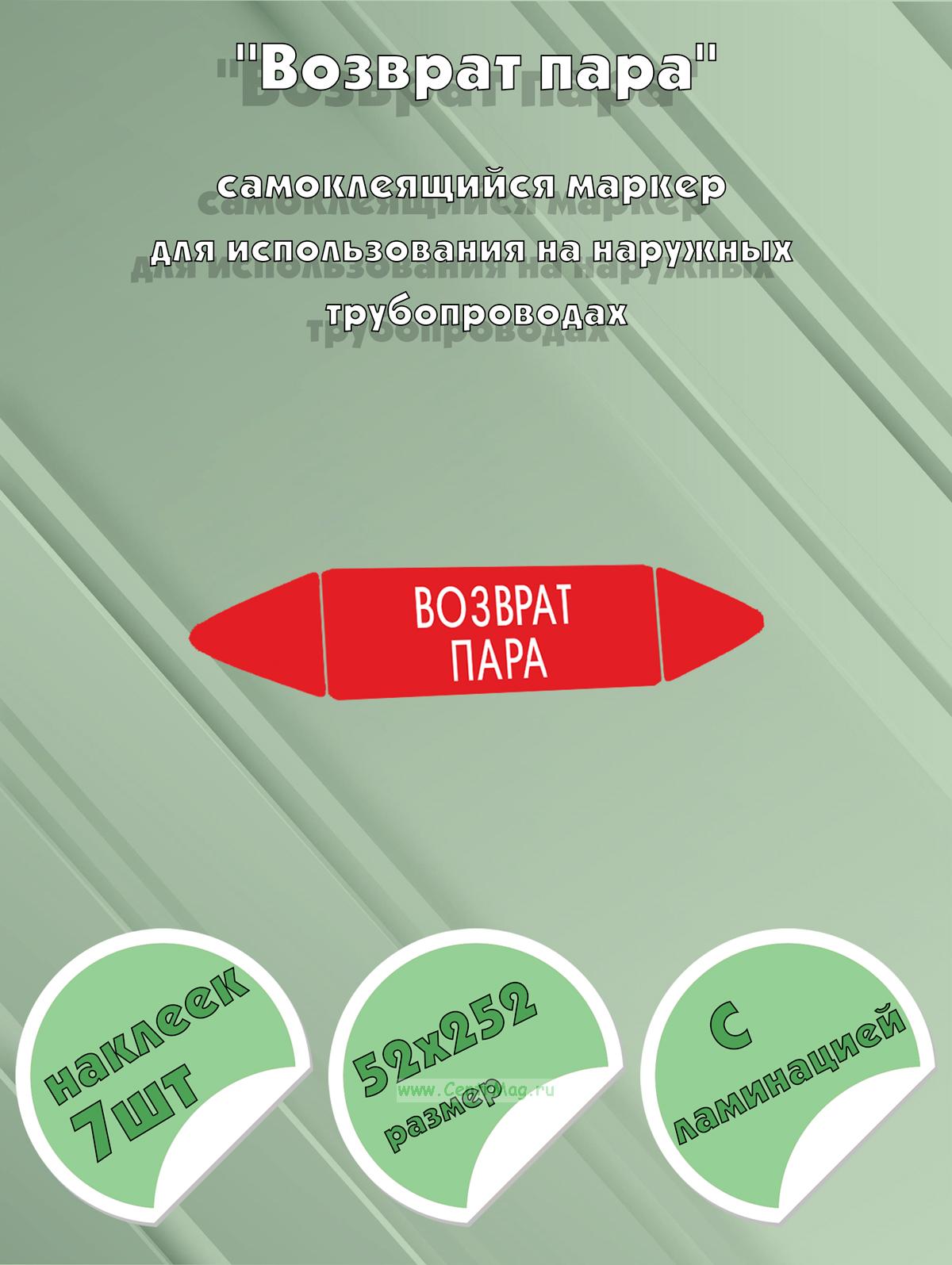 Самоклеящийся маркер "Возврат пара" (26 х 126 мм, с ламинацией) для использования на наружных трубопроводах (40 руб.)