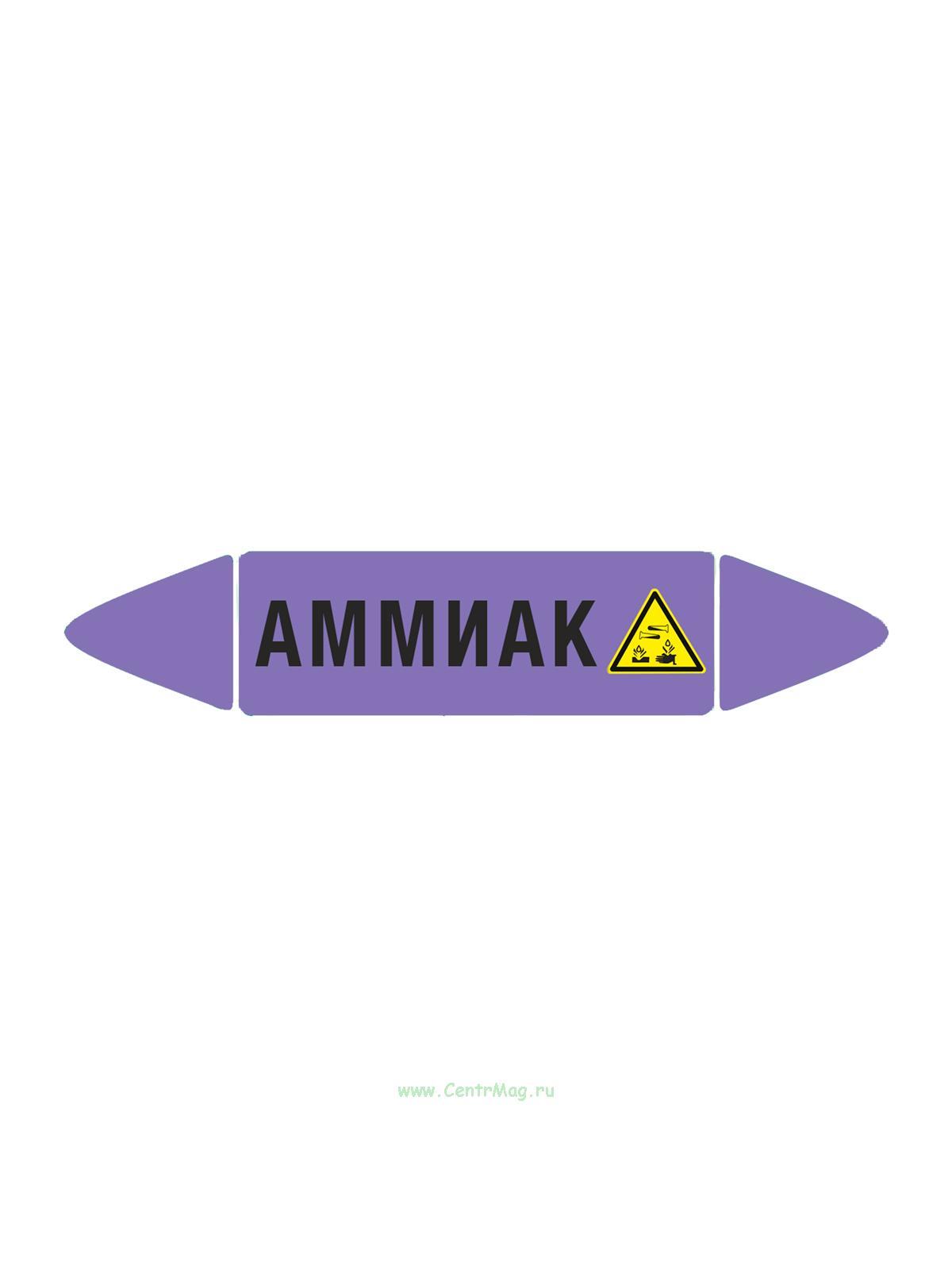 Самоклеющийся маркер «Аммиак, коррозионные вещества» (74 х 358 мм, с ламинацией) для использования на наружных трубопроводах (210 руб.)