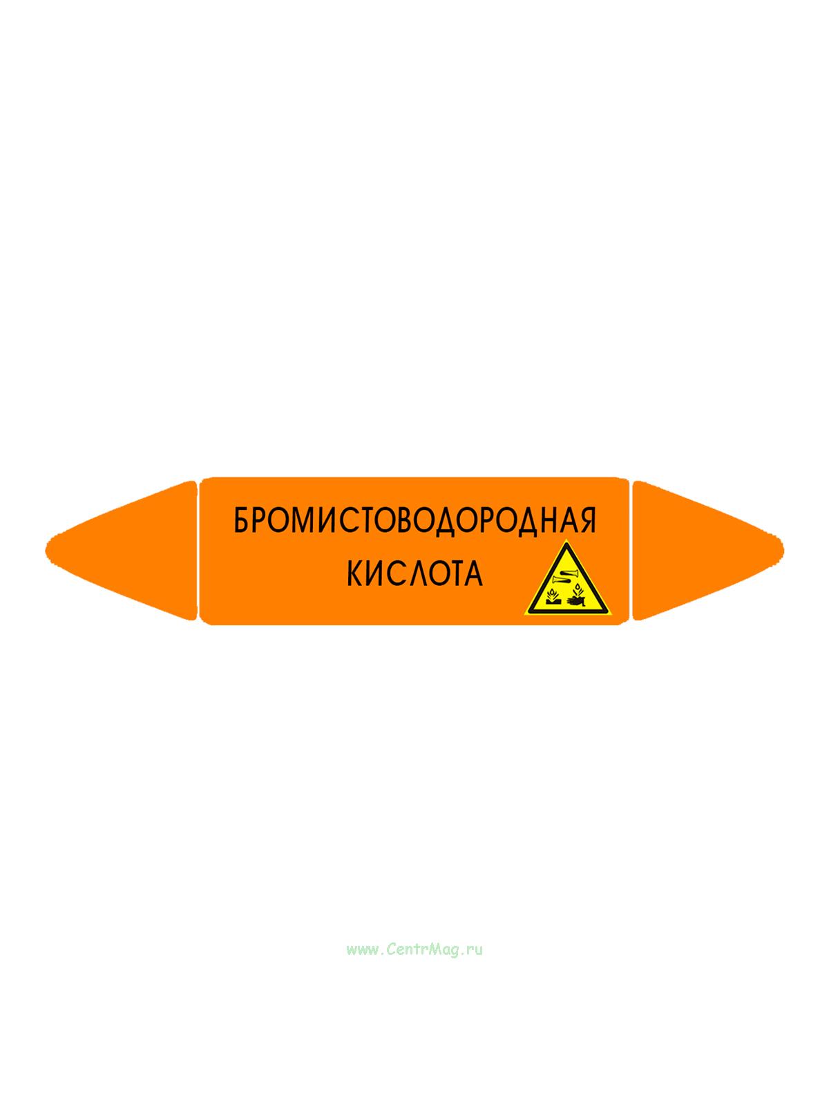 Самоклеющийся маркер «Бромистоводородная кислота, коррозионные вещества» (26 х 126 мм, с ламинацией) для использования на наружных трубопроводах (40 руб.)