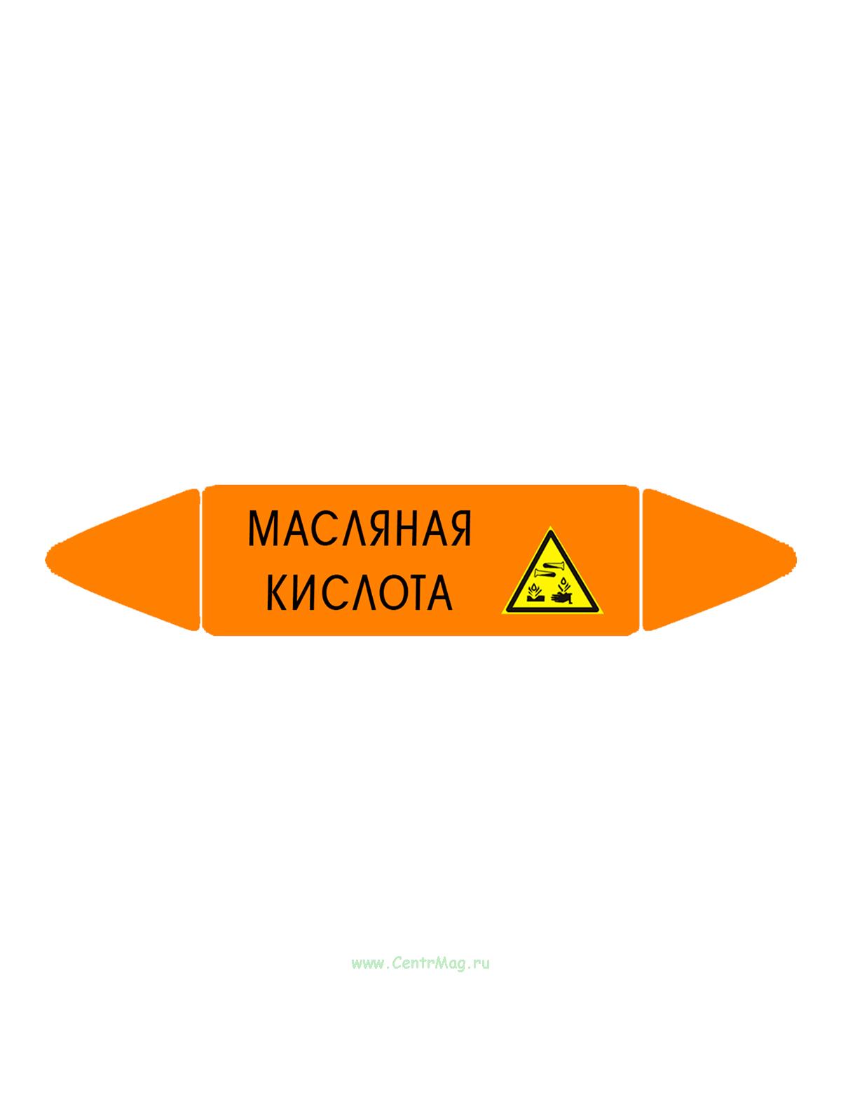 Самоклеющийся маркер «Масляная кислота, коррозионные вещества» (26 х 126 мм, с ламинацией) для использования на наружных трубопроводах (40 руб.)