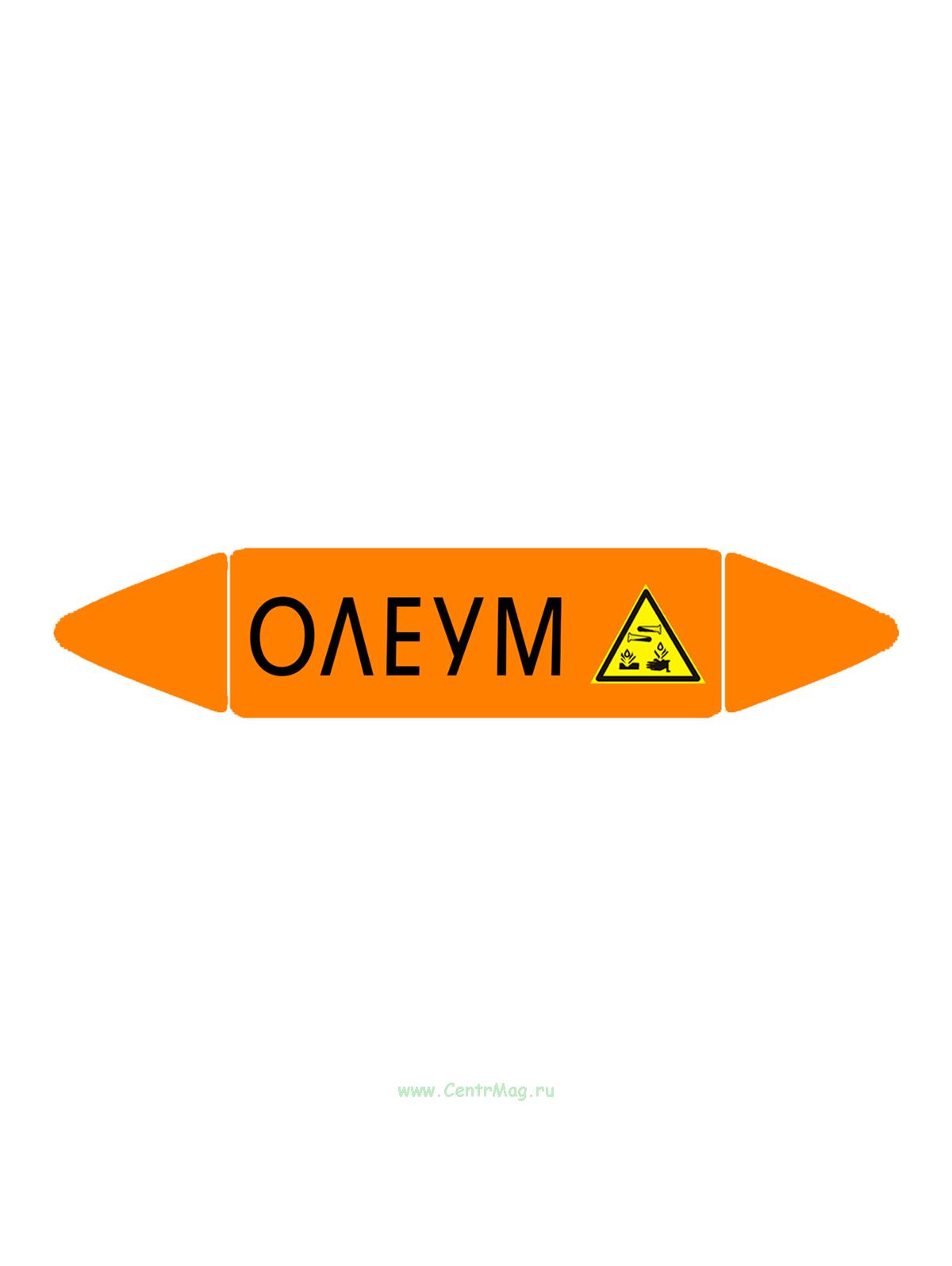 Самоклеющийся маркер «Олеум, коррозионные вещества» (74 х 358 мм, с ламинацией) для использования на наружных трубопроводах (210 руб.)