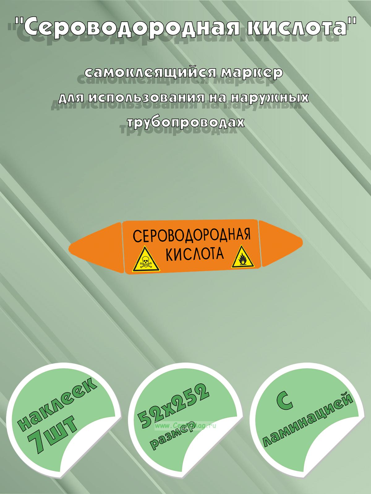 Самоклеящийся маркер "Сероводородная кислота, легковоспламеняющиеся и ядовитые вещества" (26 х 126 мм, с ламинацией) для использования на наружных тру... (40 руб.)
