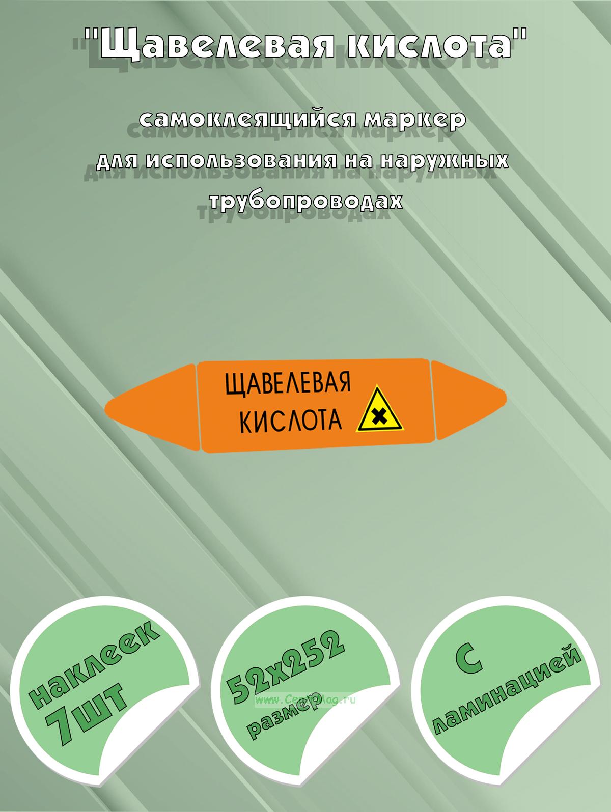 Самоклеющийся маркер «Щавелевая кислота, вредные и аллергические вещества» (74 х 358 мм, с ламинацией) для использования на наружных трубопроводах (210 руб.)