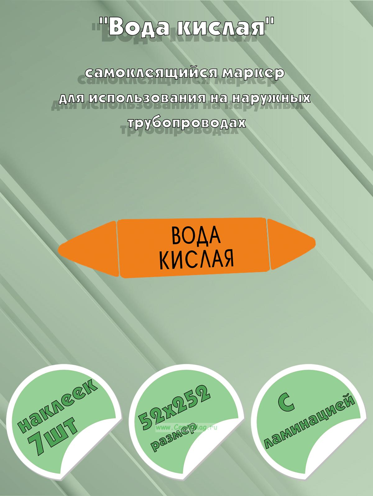 Самоклеющийся маркер «Вода кислая» (52 х 252 мм, с ламинацией) для использования на наружных трубопроводах