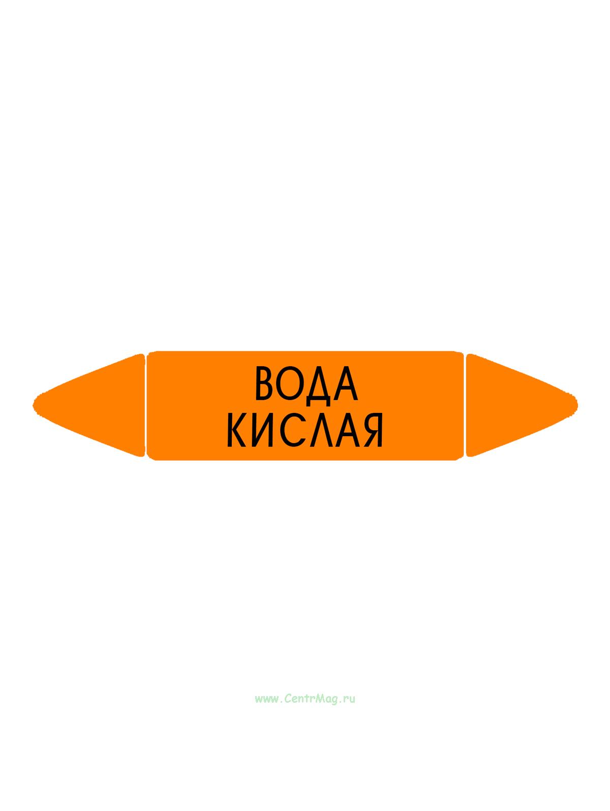 Самоклеющийся маркер «Вода кислая» (26 х 126 мм, с ламинацией) для использования на наружных трубопроводах (40 руб.)