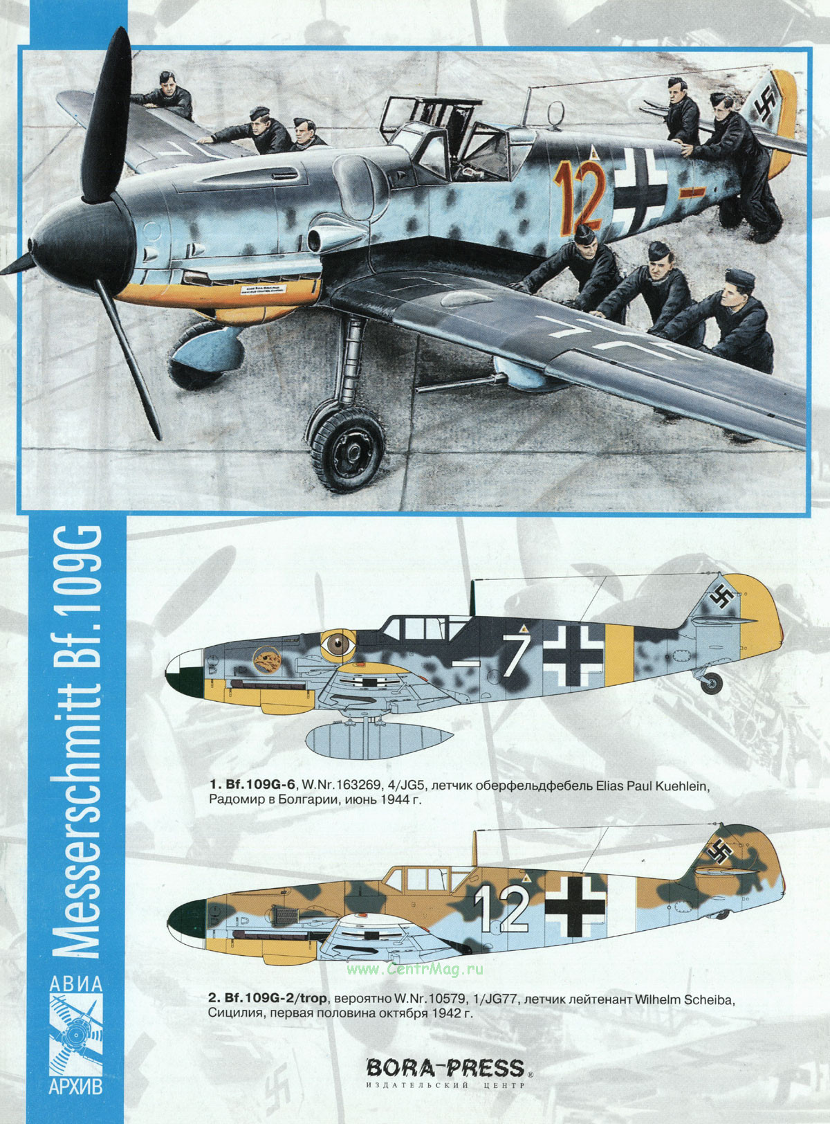 В брошюре описана история проектирования, развития и боевого применения известного немецкого истребителя Bf.109G. 20 страниц, иллюстрации, таблицы. Издание дополнено чертежами в масштабе 1/72 и окрасками реальных боевых машин.
