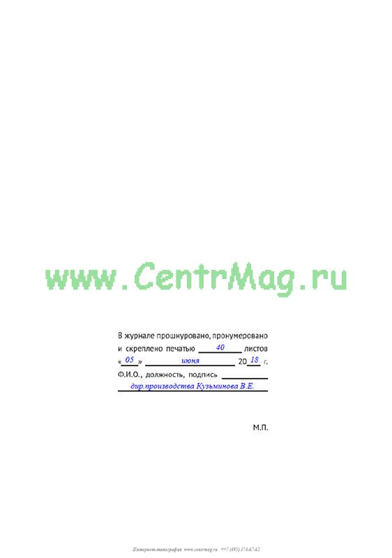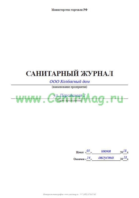 Санитарный журнал, находящийся на любом предприятии, осуществляющем реализацию продуктов питания, должен быть оформлен соответствующим образом: прошит, пронумерован и заверен печатью организации и подписью должностного лица.