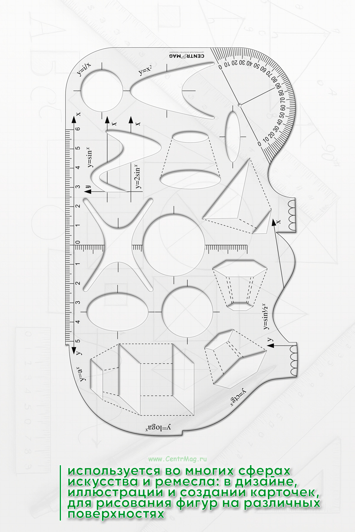 Шаблон для черчения/проектирования используется во многих сферах искусства и ремесла: в дизайне, иллюстрации и создании карточек, для рисования фигур на различных поверхностях.