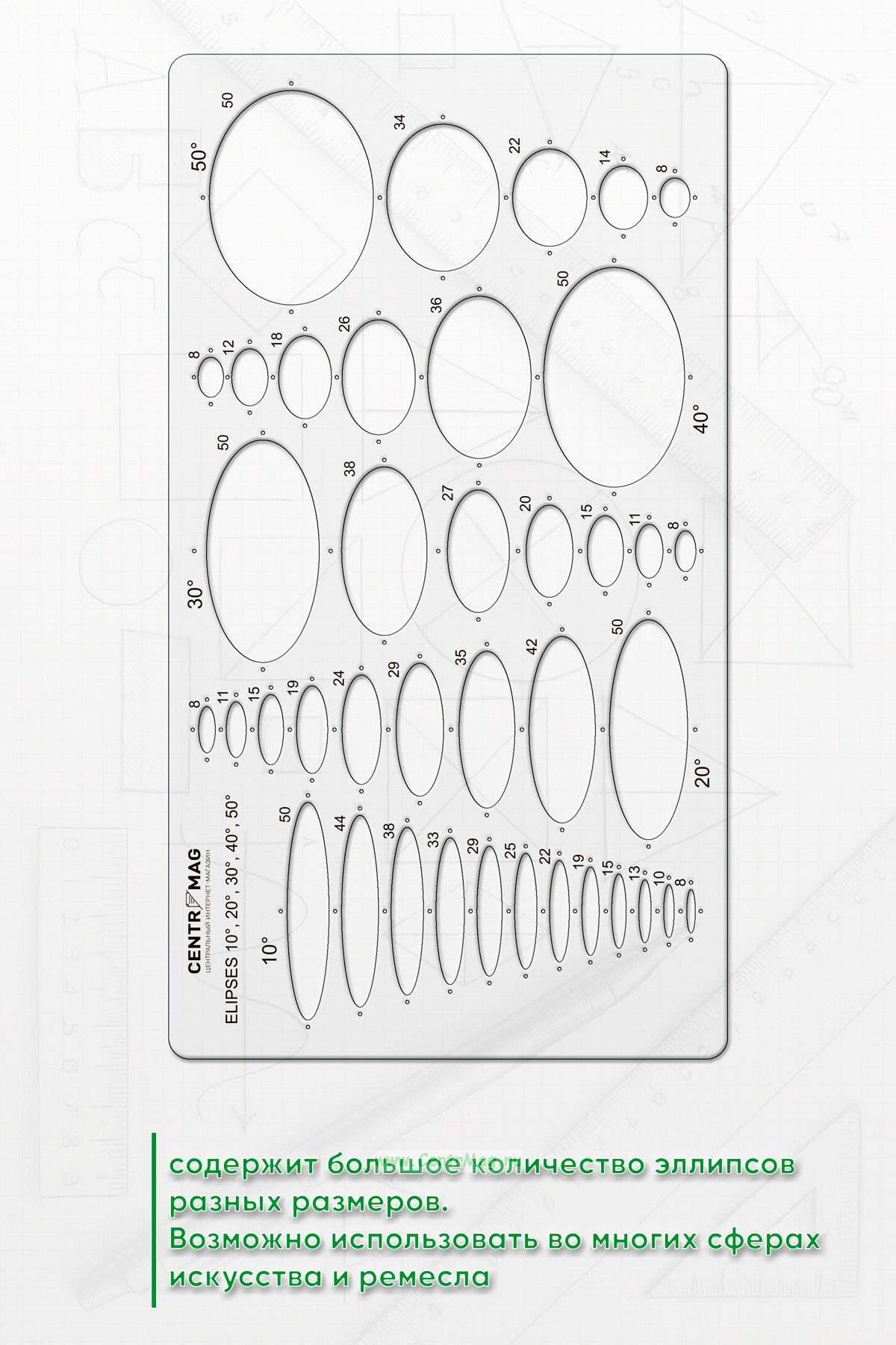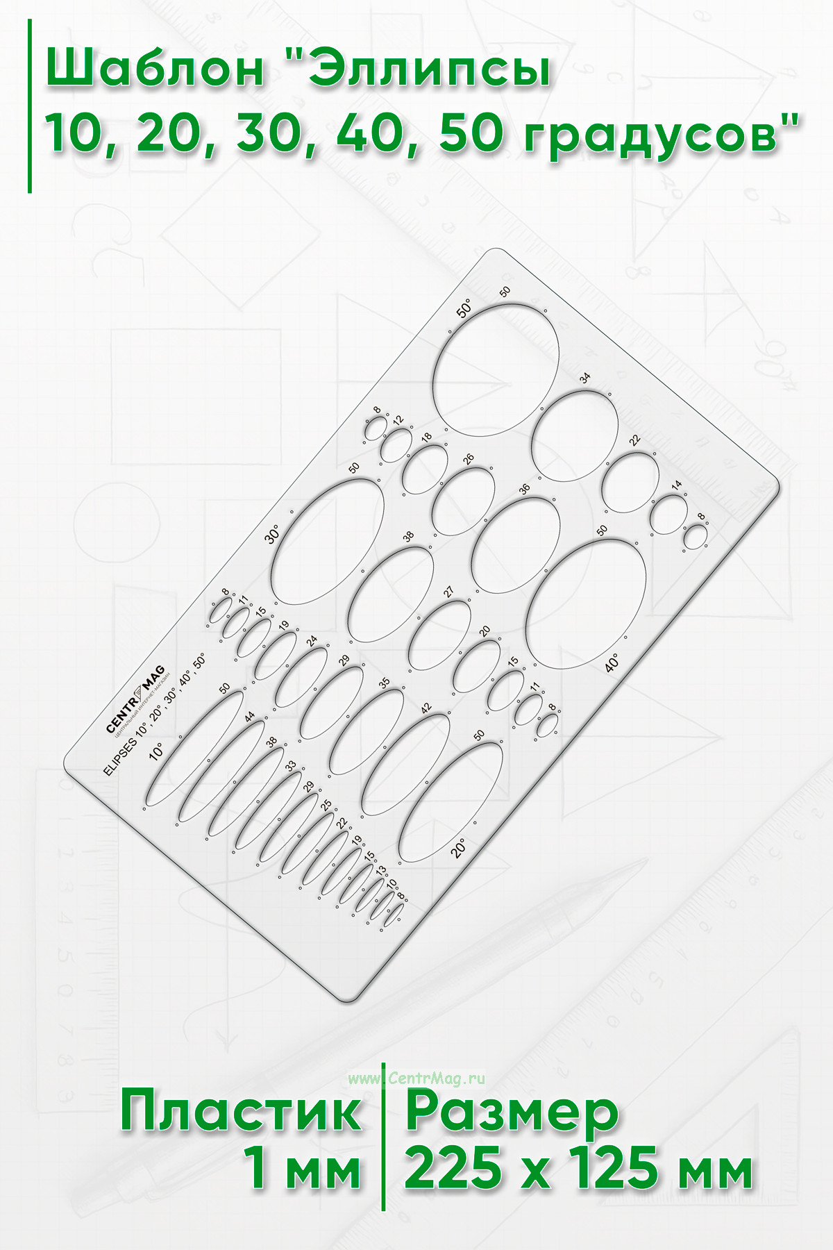 Шаблон "Эллипсы 10, 20, 30, 40, 50 градусов"