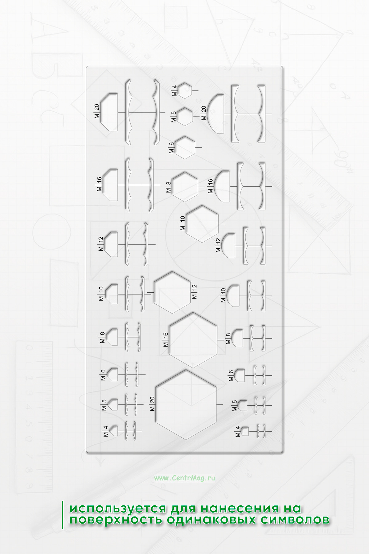 Трафарет выполнен из качественного пластика. Используется для нанесения на поверхность одинаковых символов.