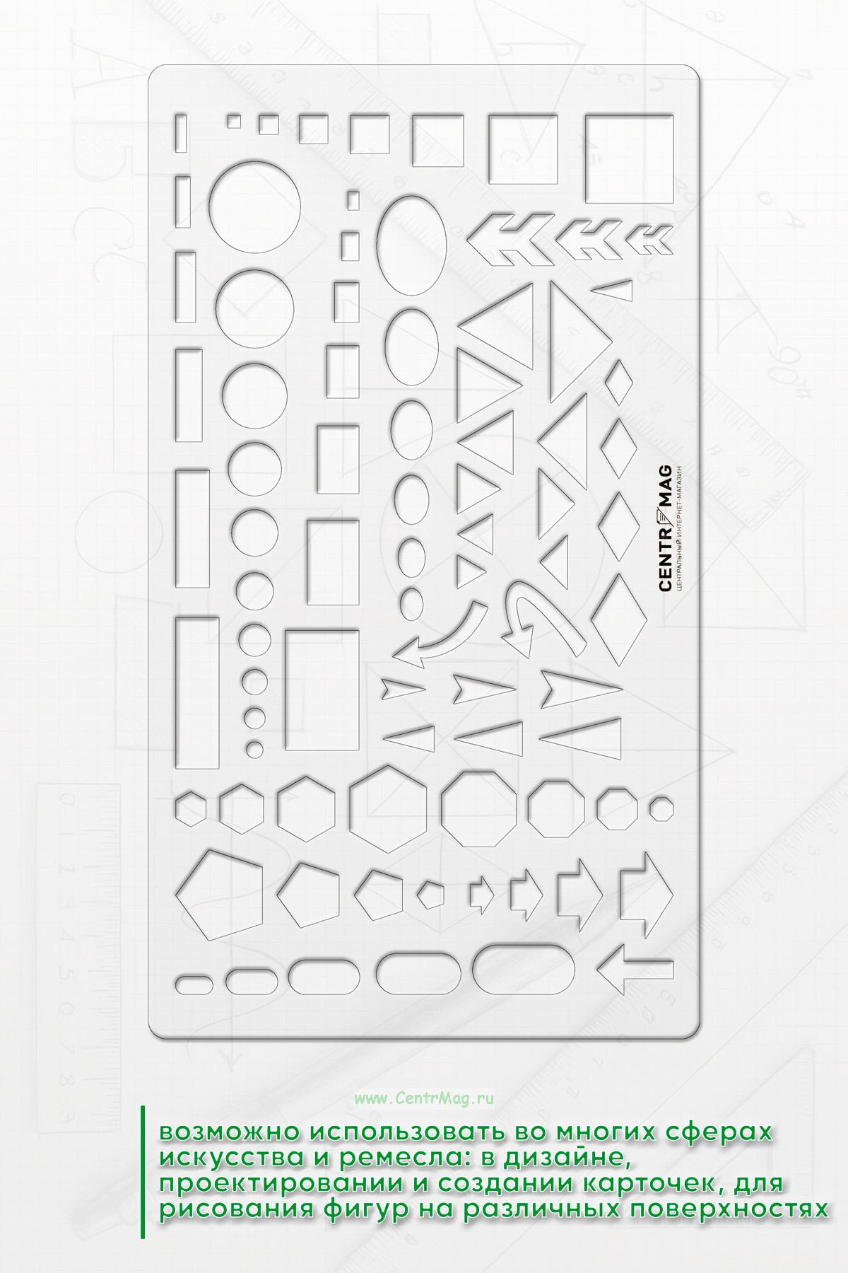 Шаблон для черчения/проектирования можно использовать во многих сферах искусства и ремесла: в дизайне, проектировании и создании карточек, для рисования фигур на различных поверхностях.