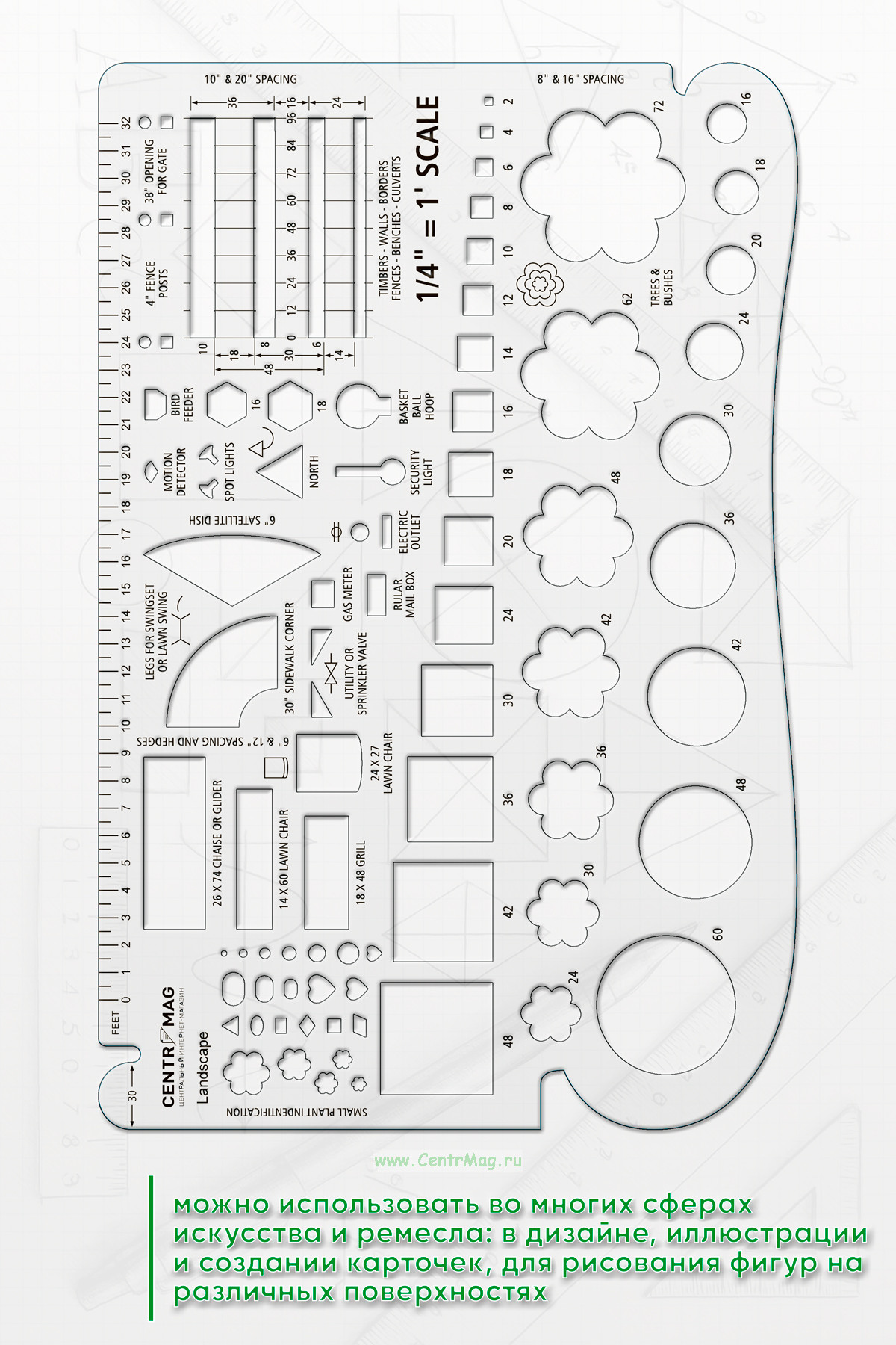 Шаблон для черчения/проектирования можно использовать во многих сферах искусства и ремесла: в дизайне, иллюстрации и создании карточек, для рисования фигур на различных поверхностях.