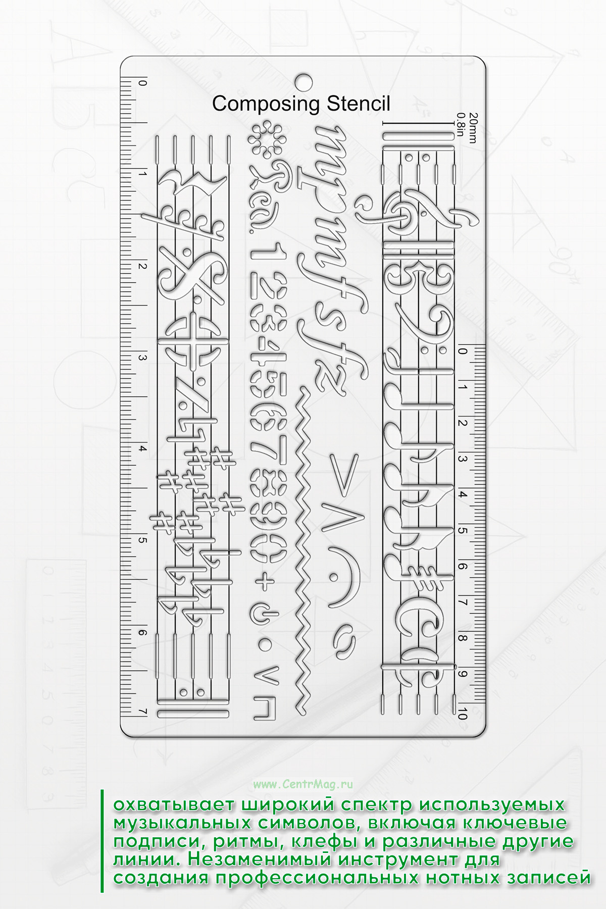 Шаблон композитора или линейка-трафарет для записи нот - рофессиональный инструмент для музыкантов, композиторов и педагогов.