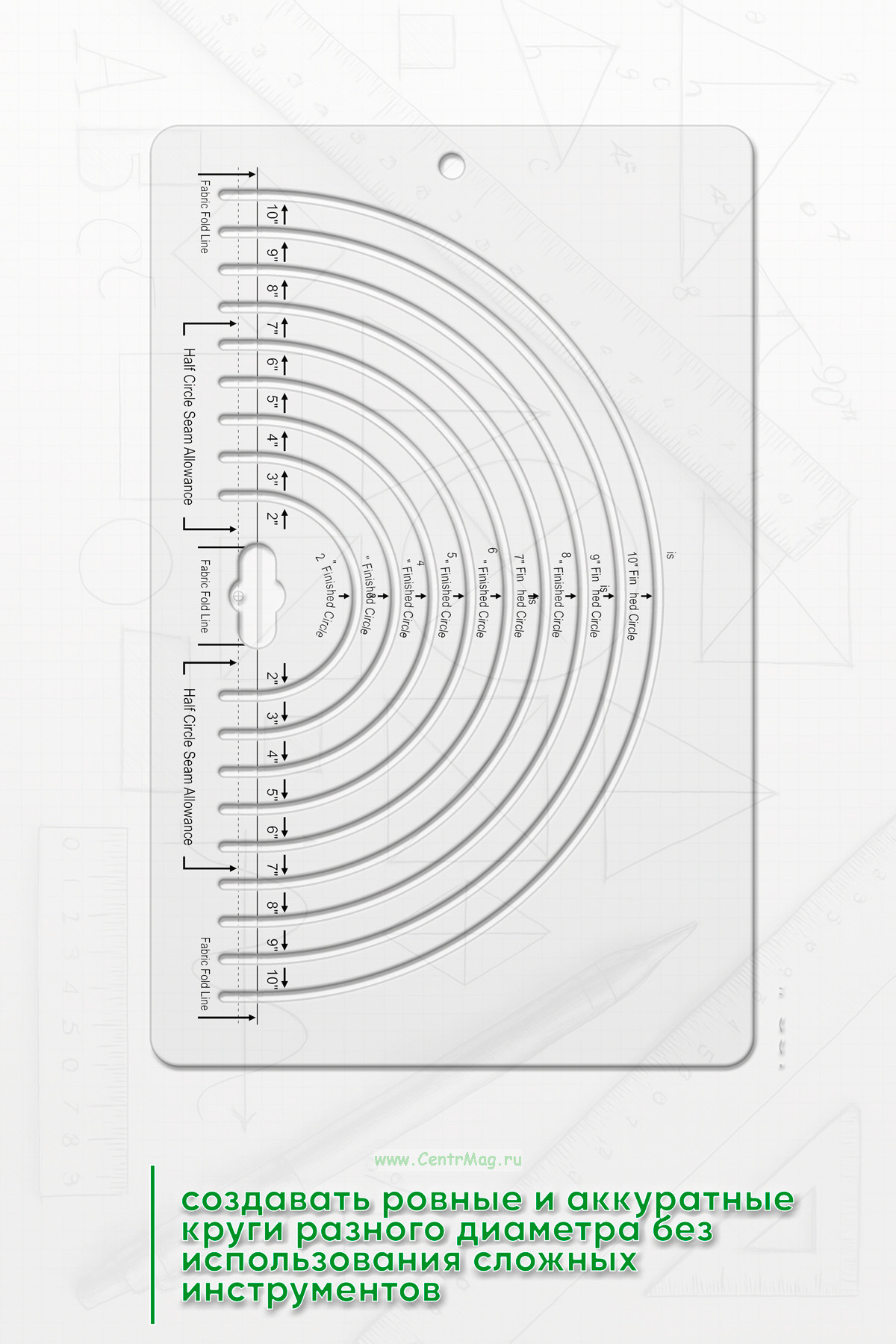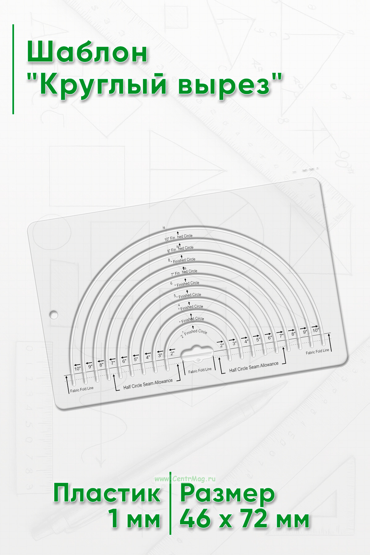 Шаблон "Круглый вырез" предназначен для облегчения и точности вырезания круглых заготовок или отверстий. Он помогает создавать ровные и аккуратные круги разного диаметра без использования сложных инструментов.