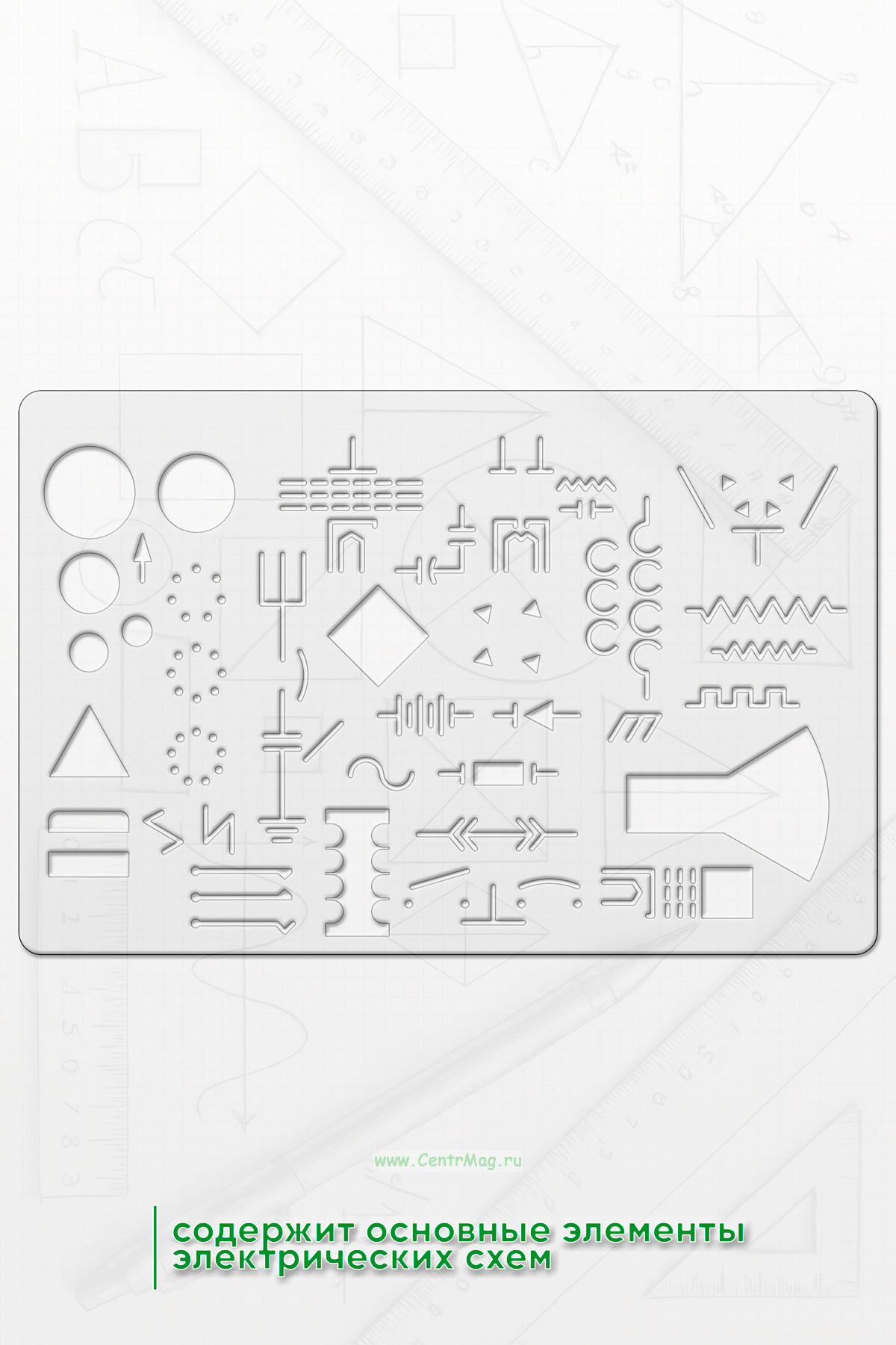 Шаблон содержит основные элементы электрических схем