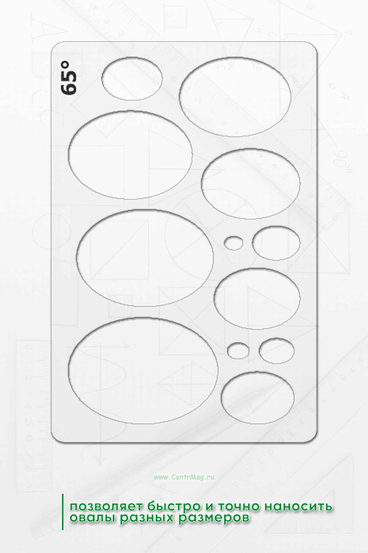 Шаблон позволяет быстро и точно наносить овалы разных размеров. Этот шаблон позволяет пользователю размещать его на любой поверхности и рисовать точные фигуры.
